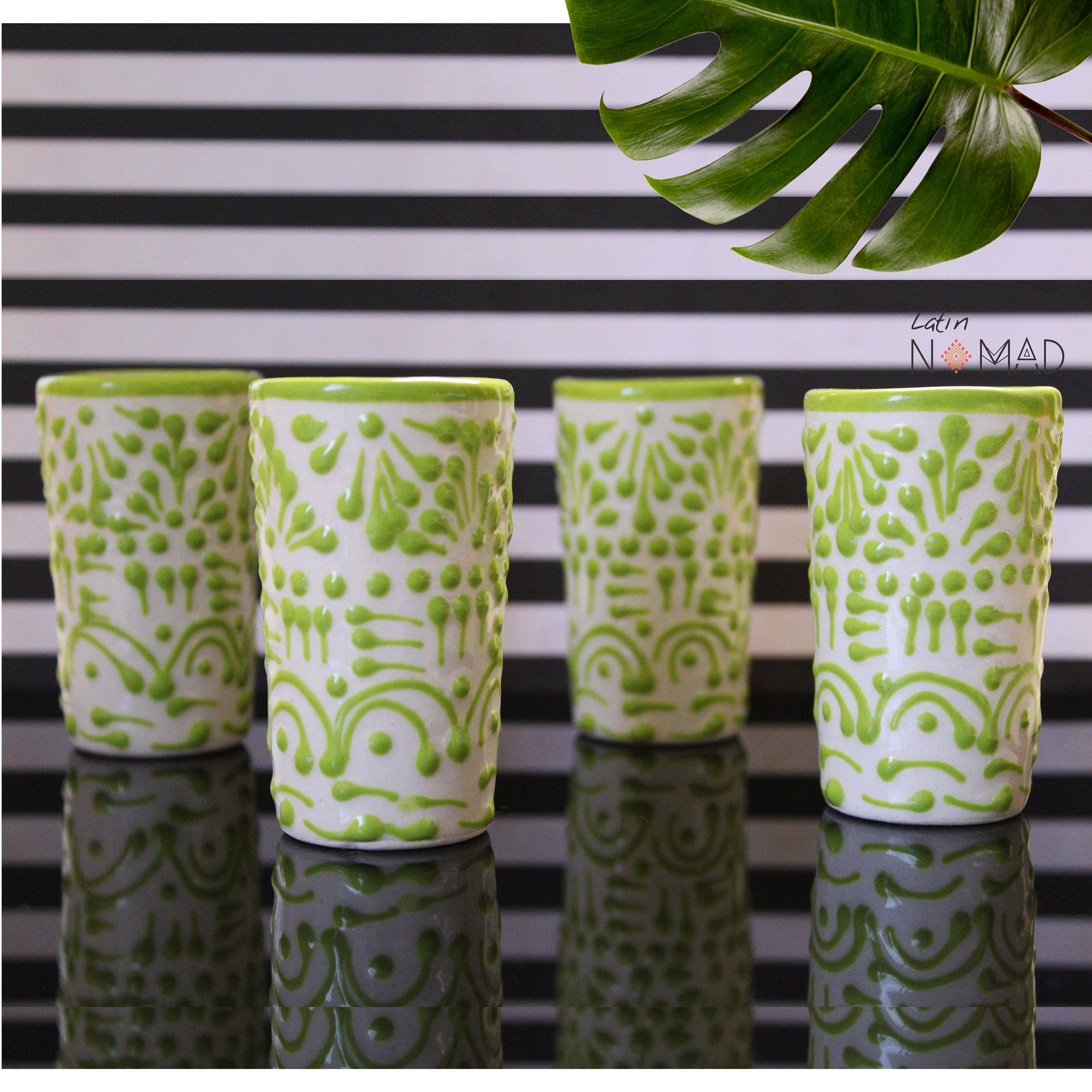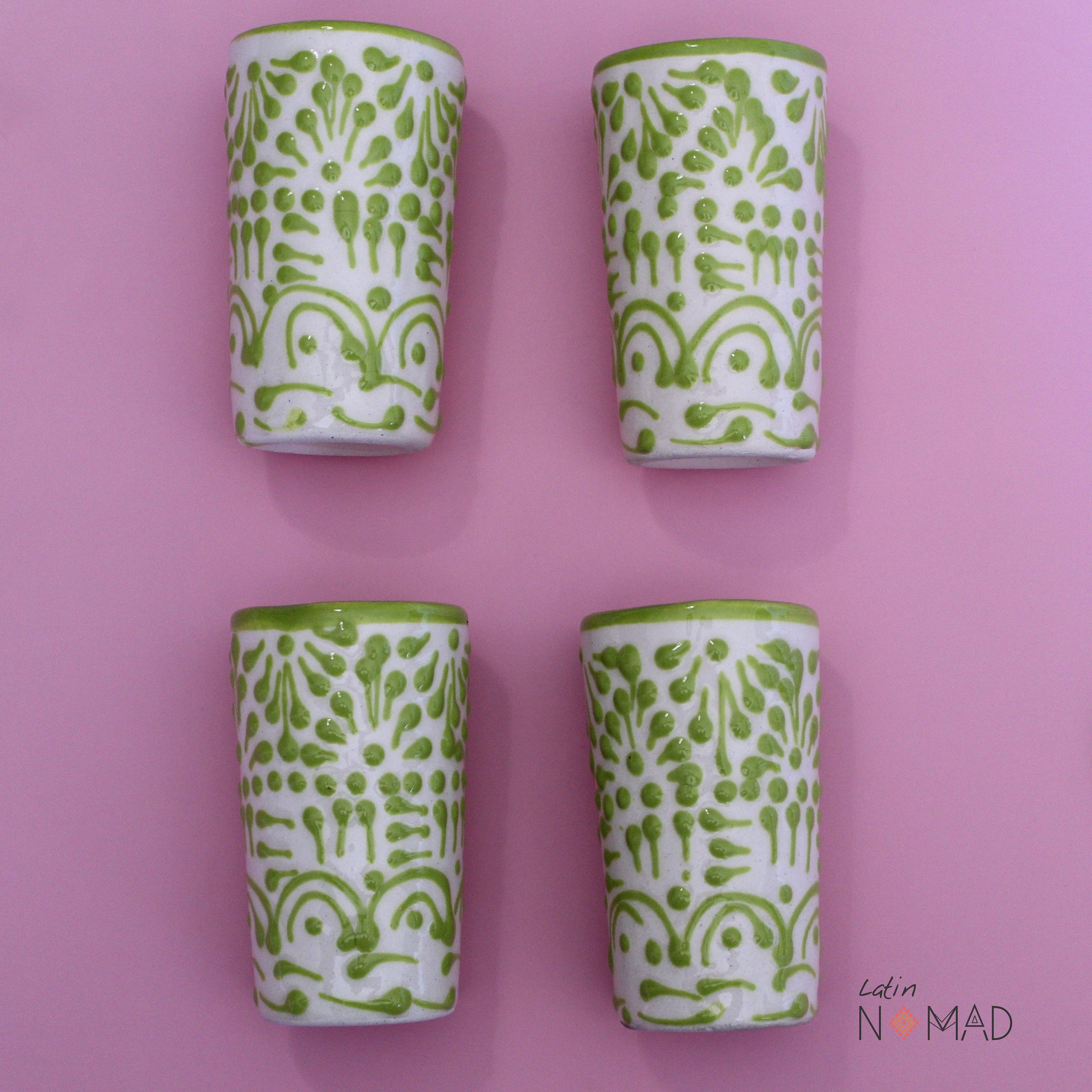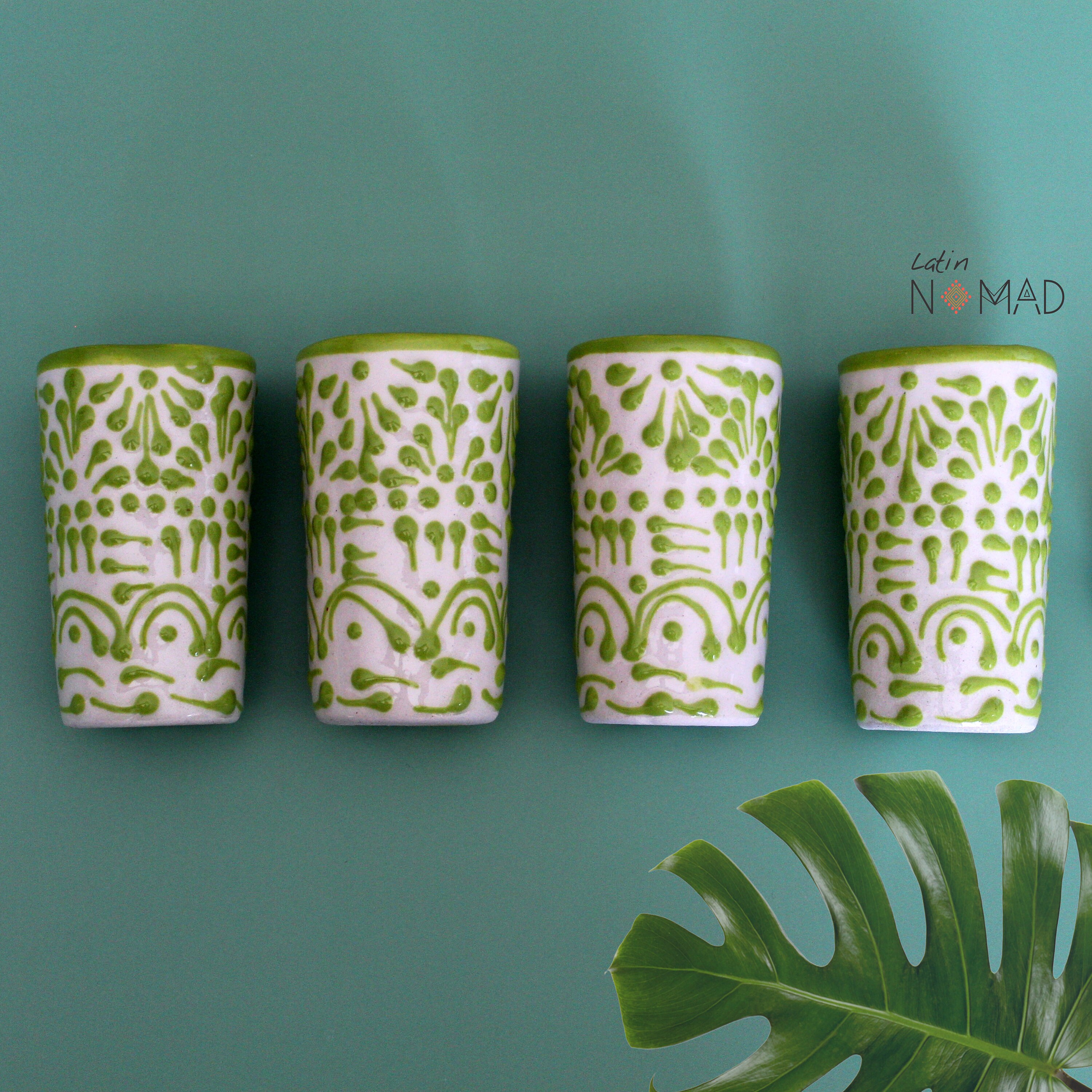 Ceramic Talavera Tequila Shot Glass/ Lime Green and White Mexican Drinkware by Latin Nomad