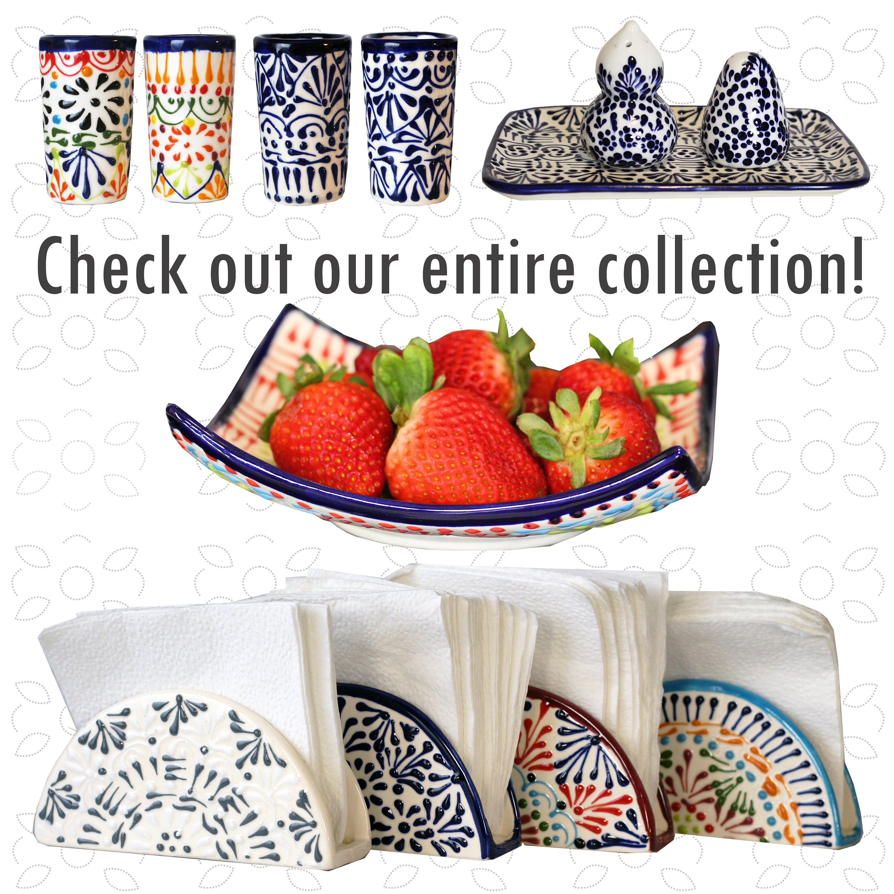 Talavera with a new modern twist, we keep the traditional with a pump of fresh mixed patterns and flower details that makes each glass totally unique and a perfect match to any of our pieces in our collection.