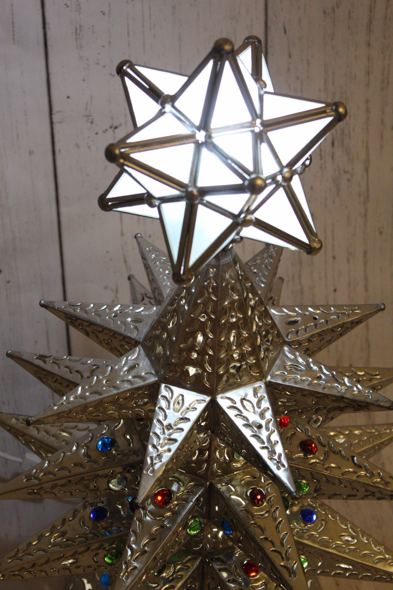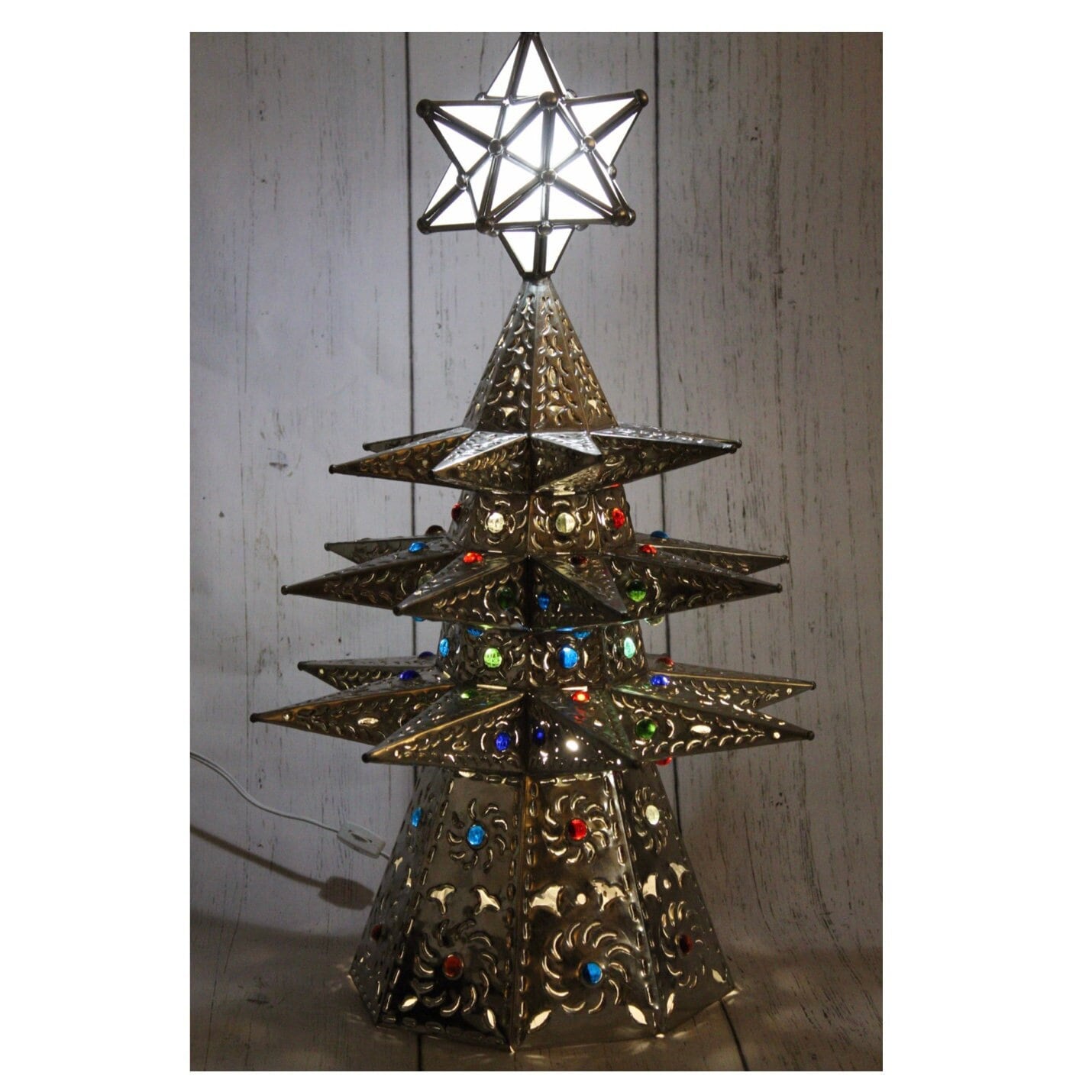 Christmas Tree Light Rustic Decor Punched Tin Metal in 26" height.