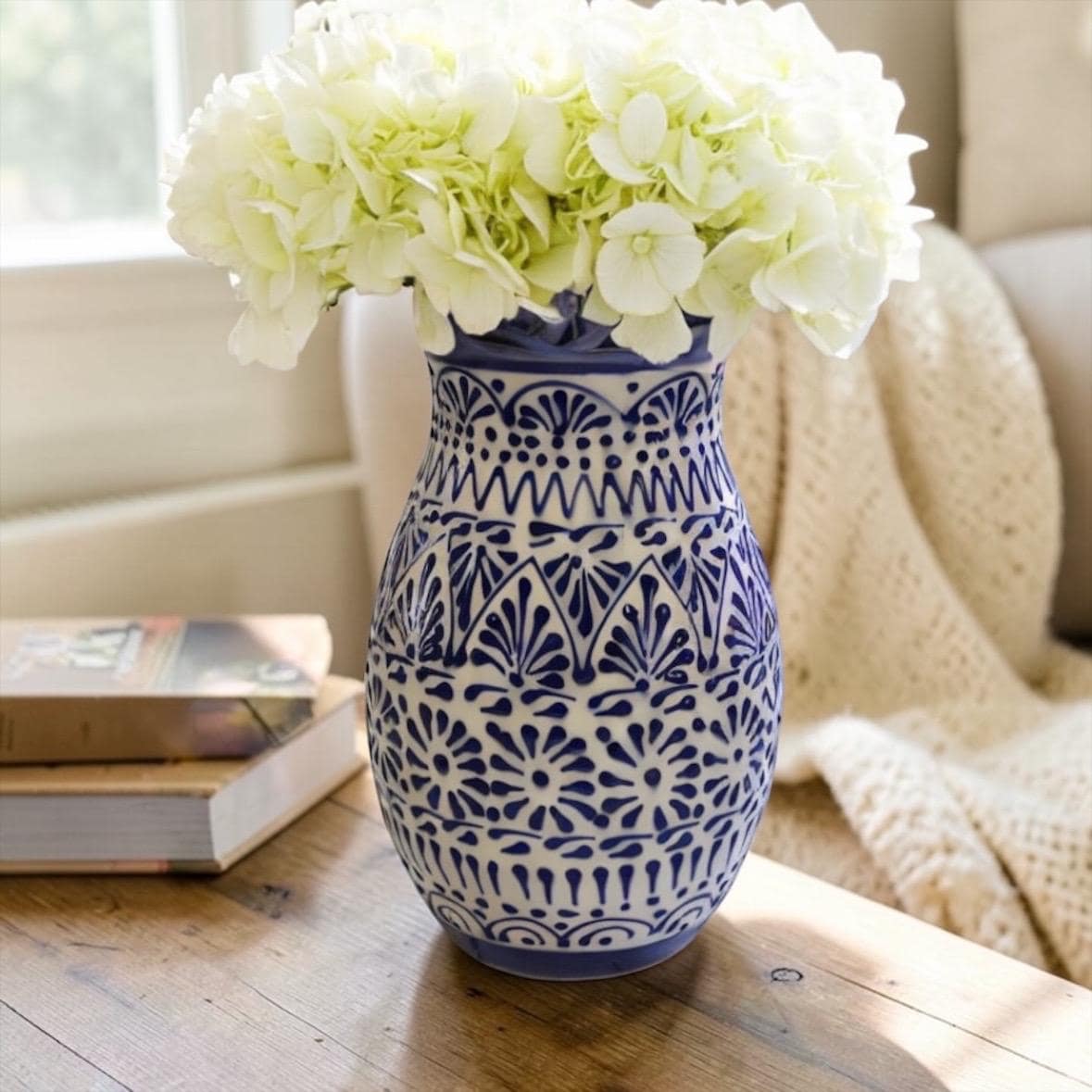 Introducing our signature style featuring a Talavera inspired design that adds a touch of elegance and charm to any table setting. This handcrafted floral vase showcases a symmetrical shape with a classic elegance to adorn any table, corner or spot at your home.