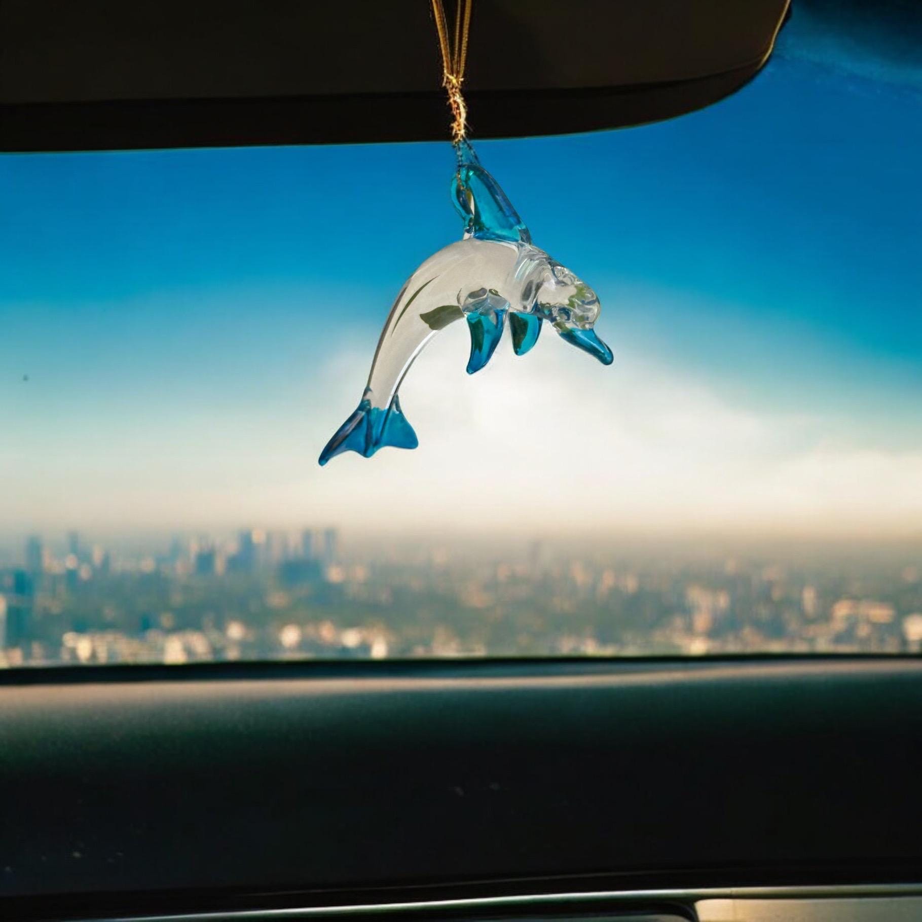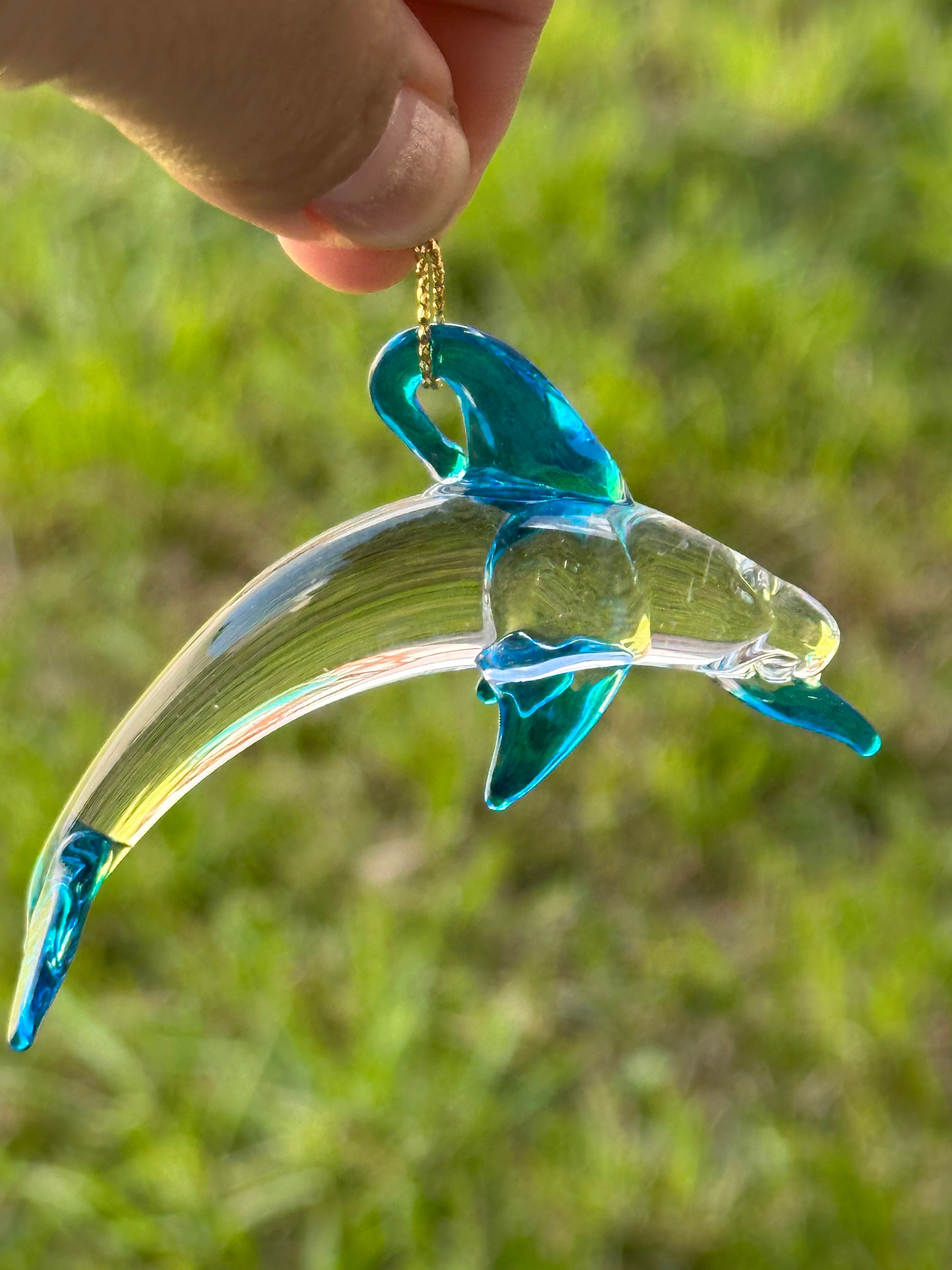 Dolphin handblown glass art, Mexican handcrafted figurines and ornaments, rear-view mirror car accessories