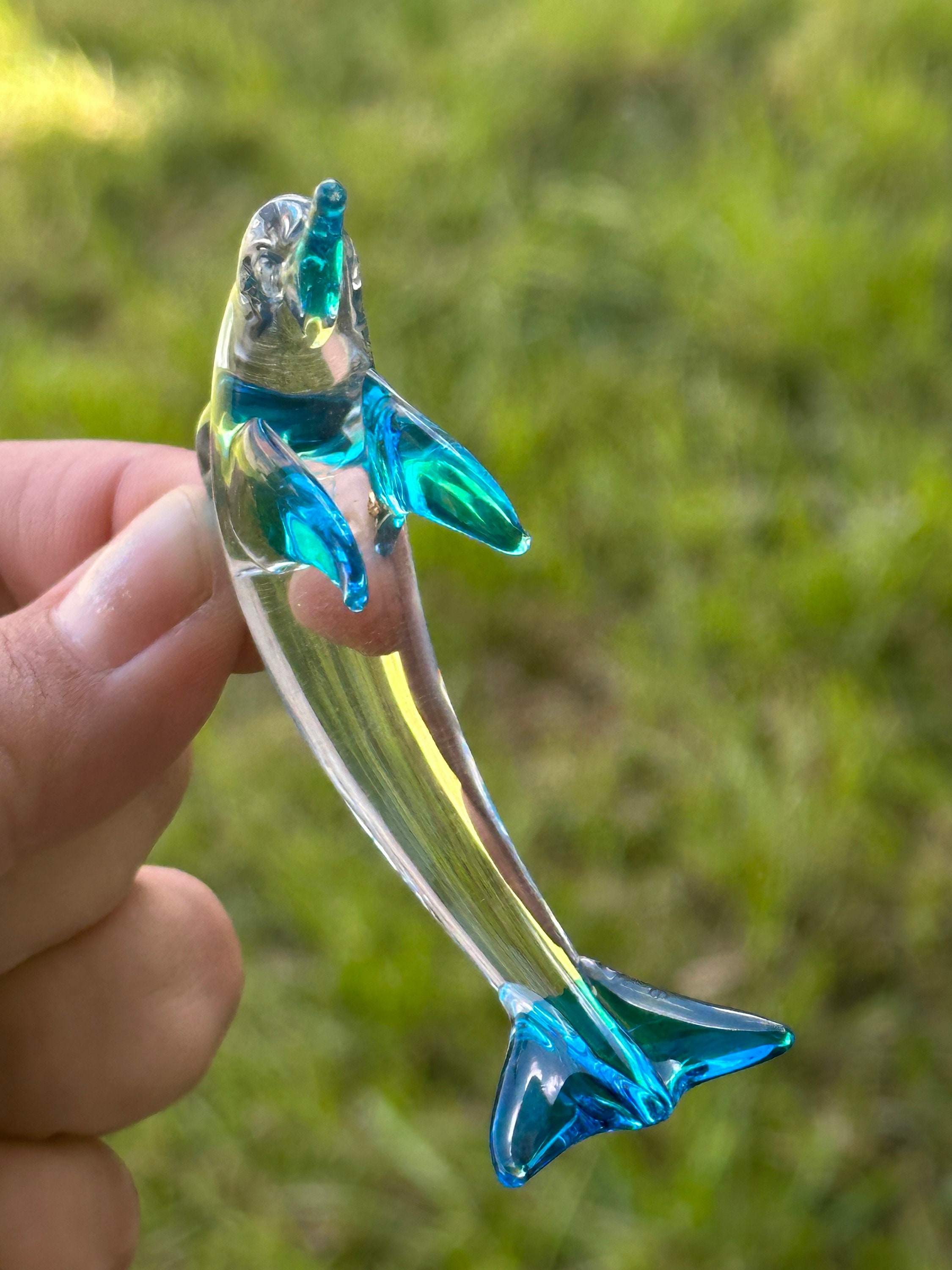 Crafted from high-quality glass, this dolphin figurine is a true work of art that will stand the test of time. Whether you're a collector of glass figurines or simply looking for a stunning piece to display in your home, this beautiful dolphin figurine is sure to impress.