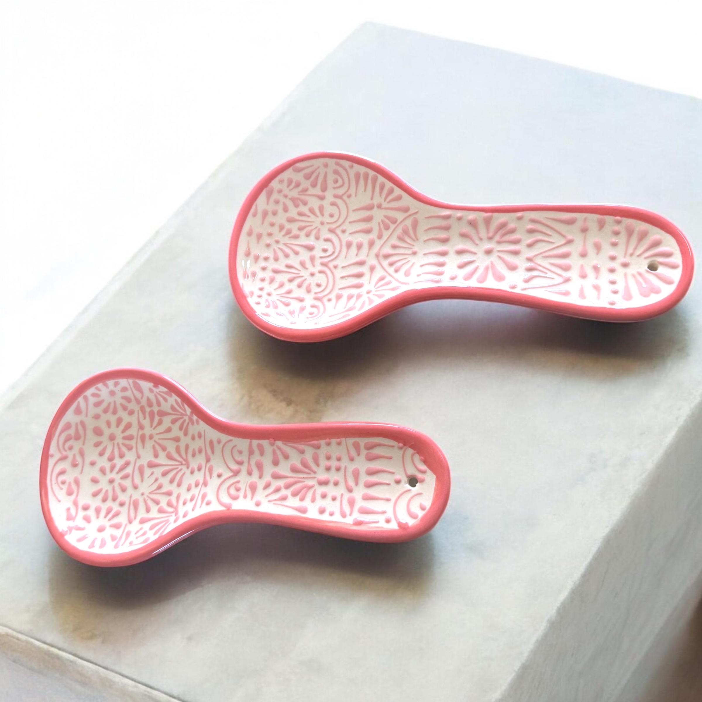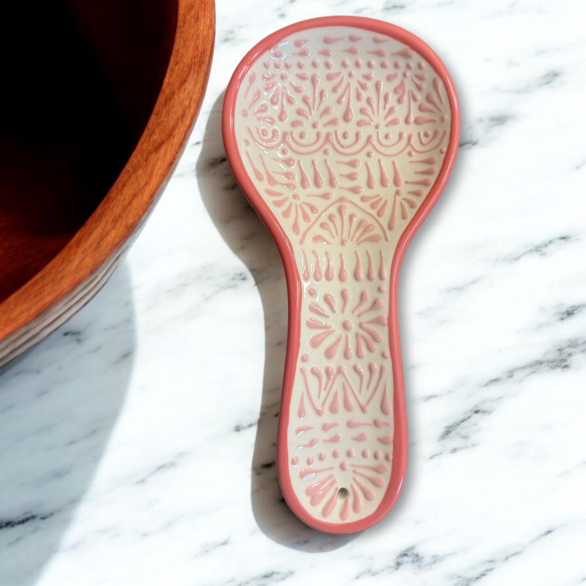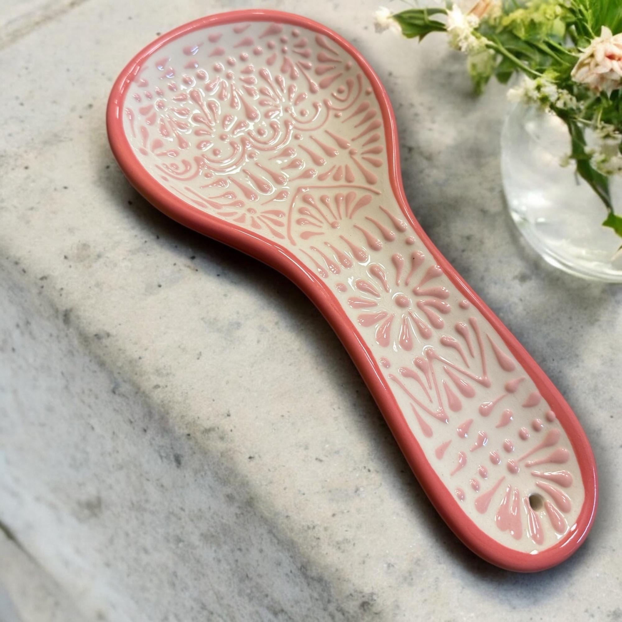 Pink Ceramic Talavera Spoon Rest / Traditional Mexican Kitchenware and Utensils by Latin Nomad.