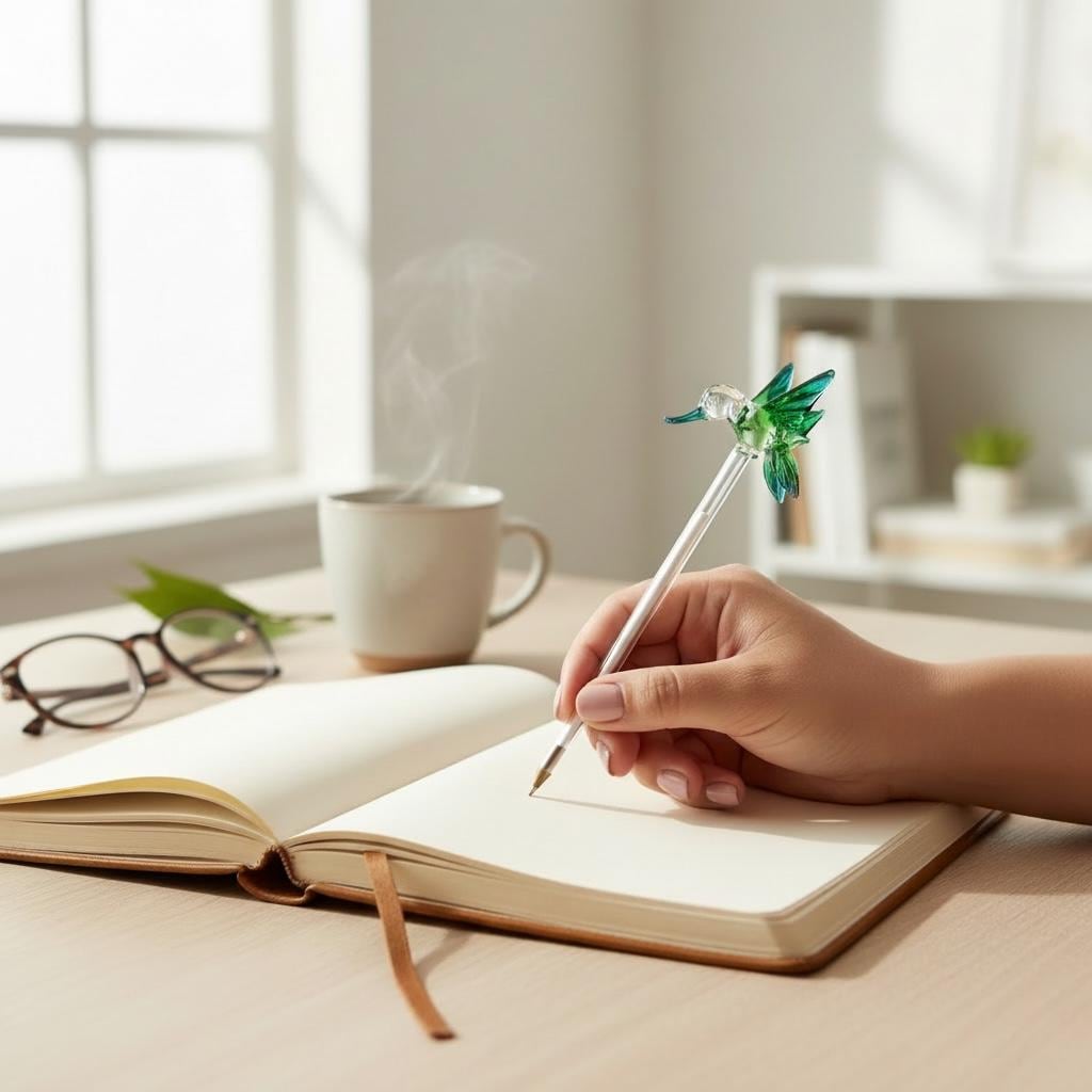 This pen is handcrafted with a decorative glass motiff at the top of the pen, perfect for any gift ocassion or as an eye candy for your desk. Pen design doesn't come with a plastic or glass cap.