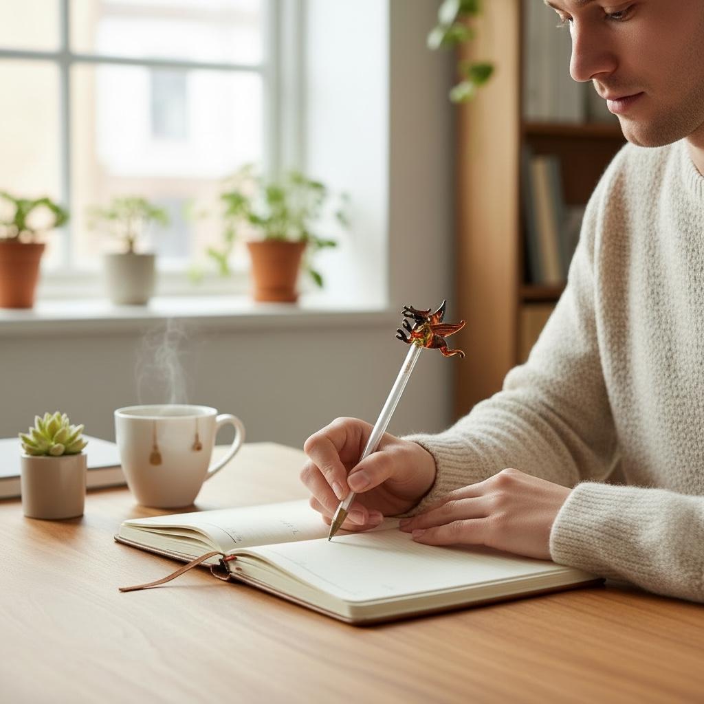 This pen is handcrafted with a decorative glass motiff at the top of the pen, perfect for any gift ocassion or as an eye candy for your desk. Pen design doesn't come with a plastic or glass cap.
