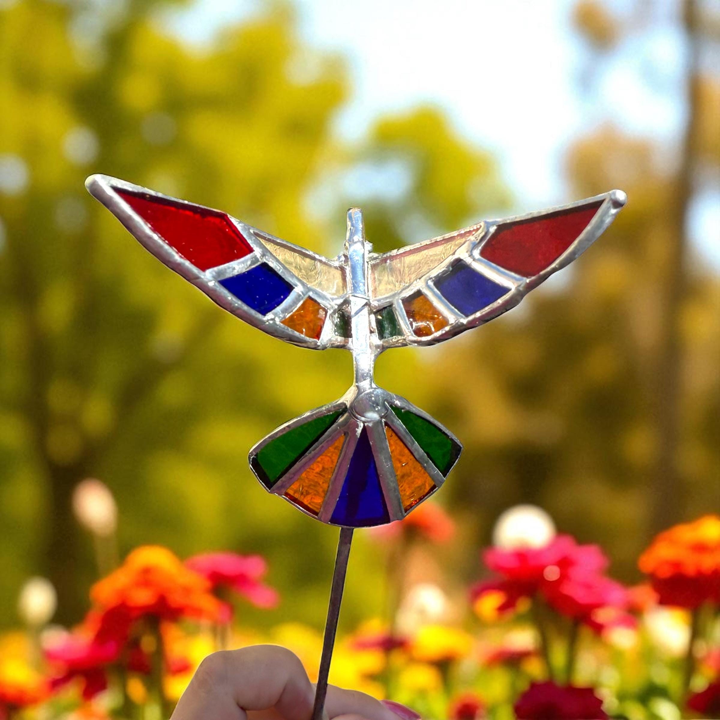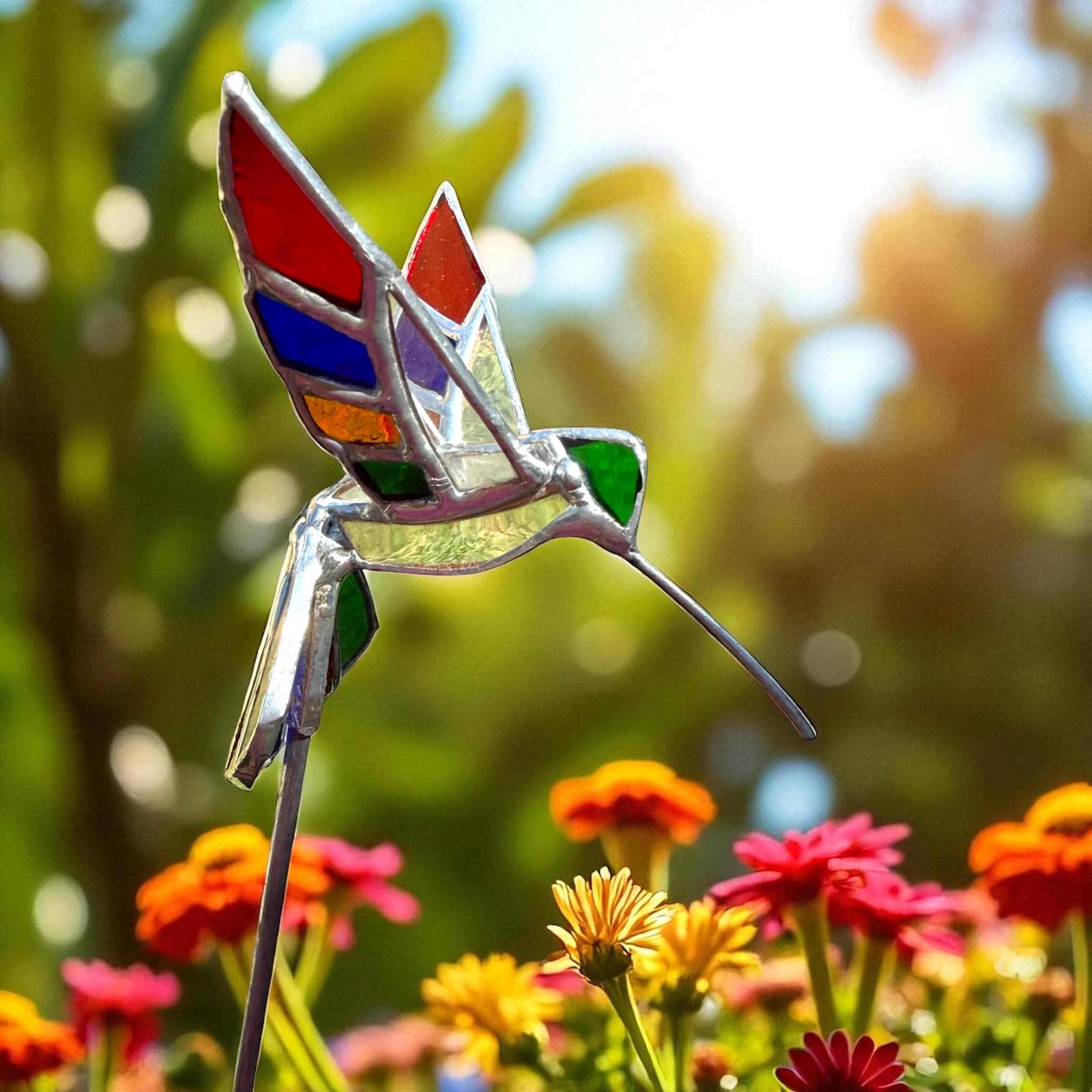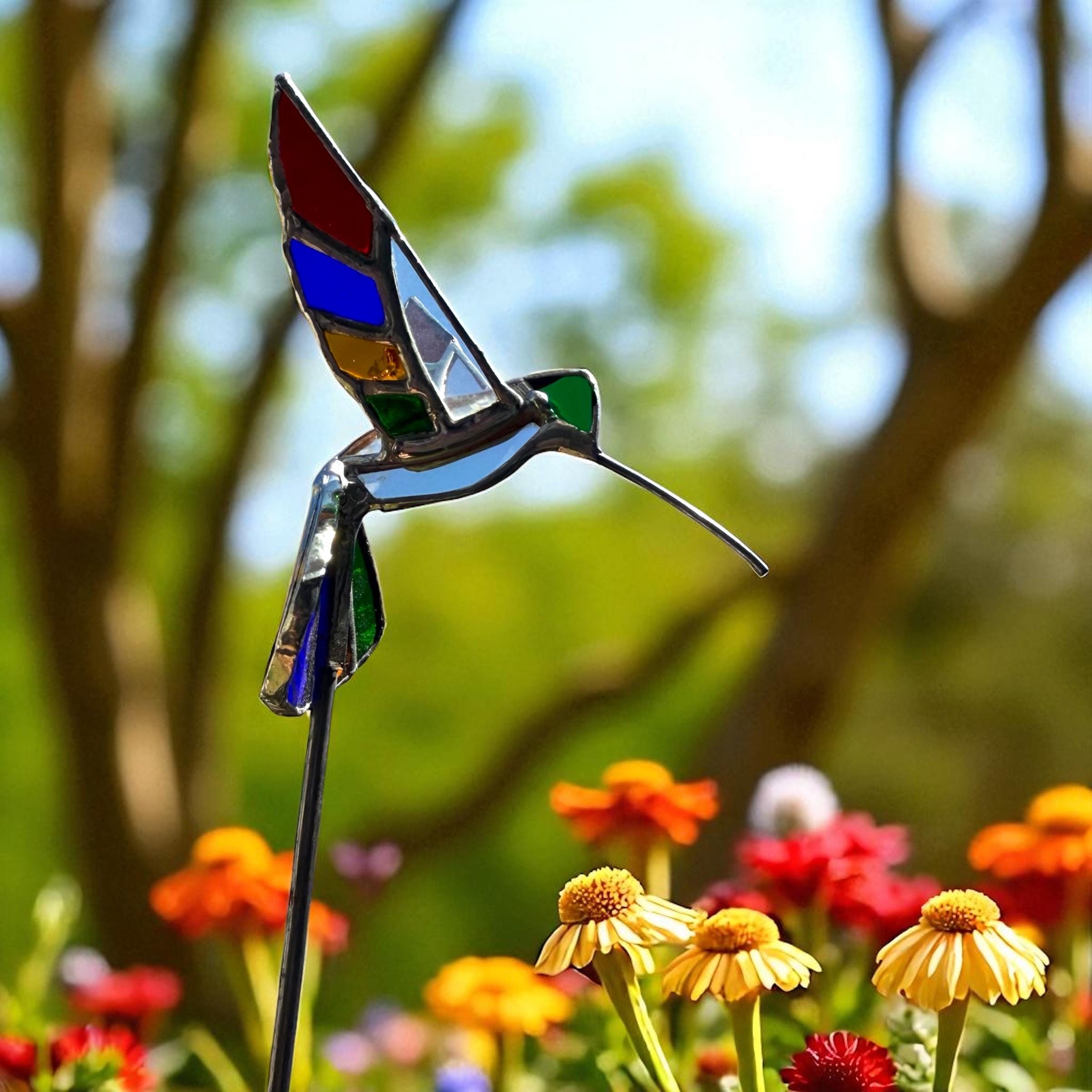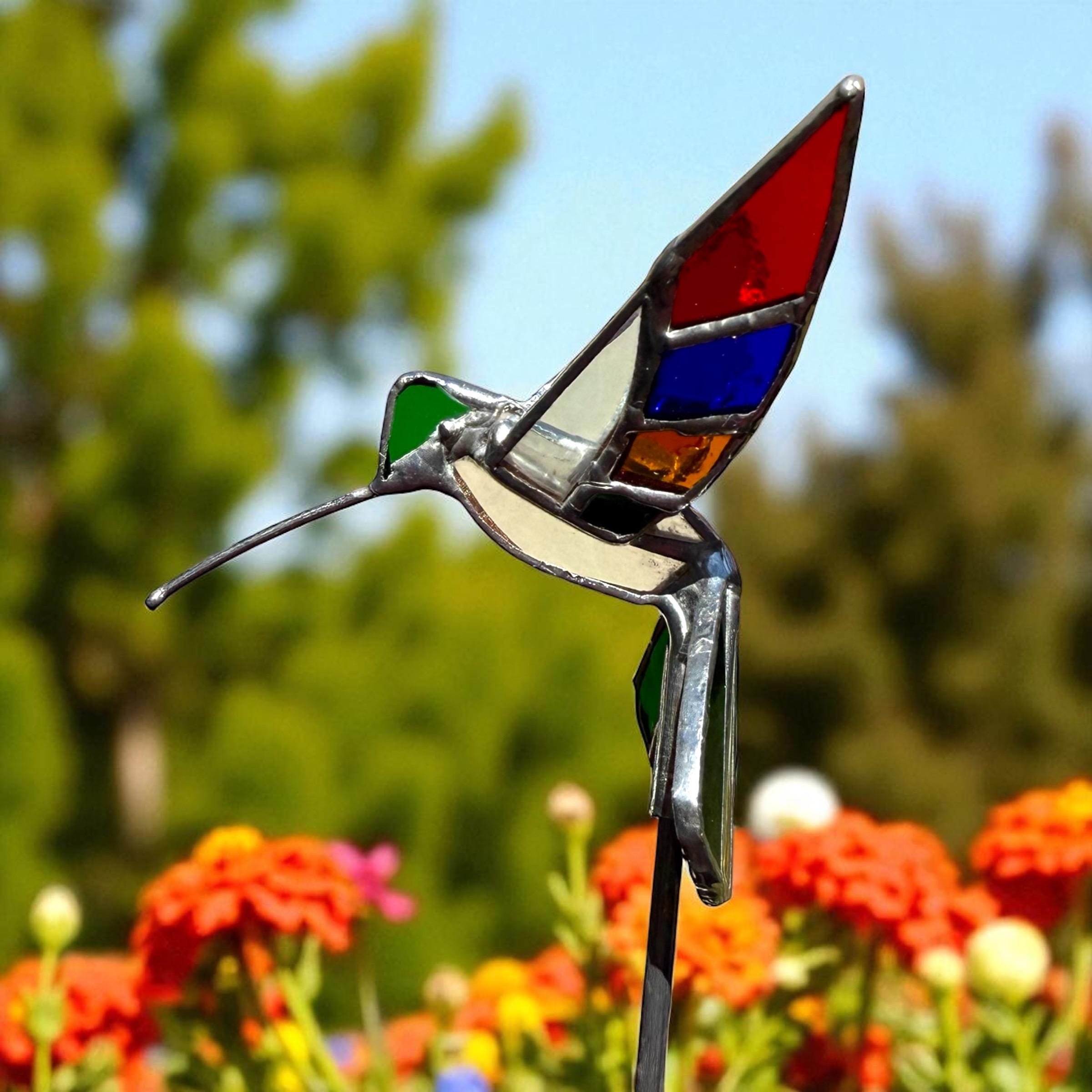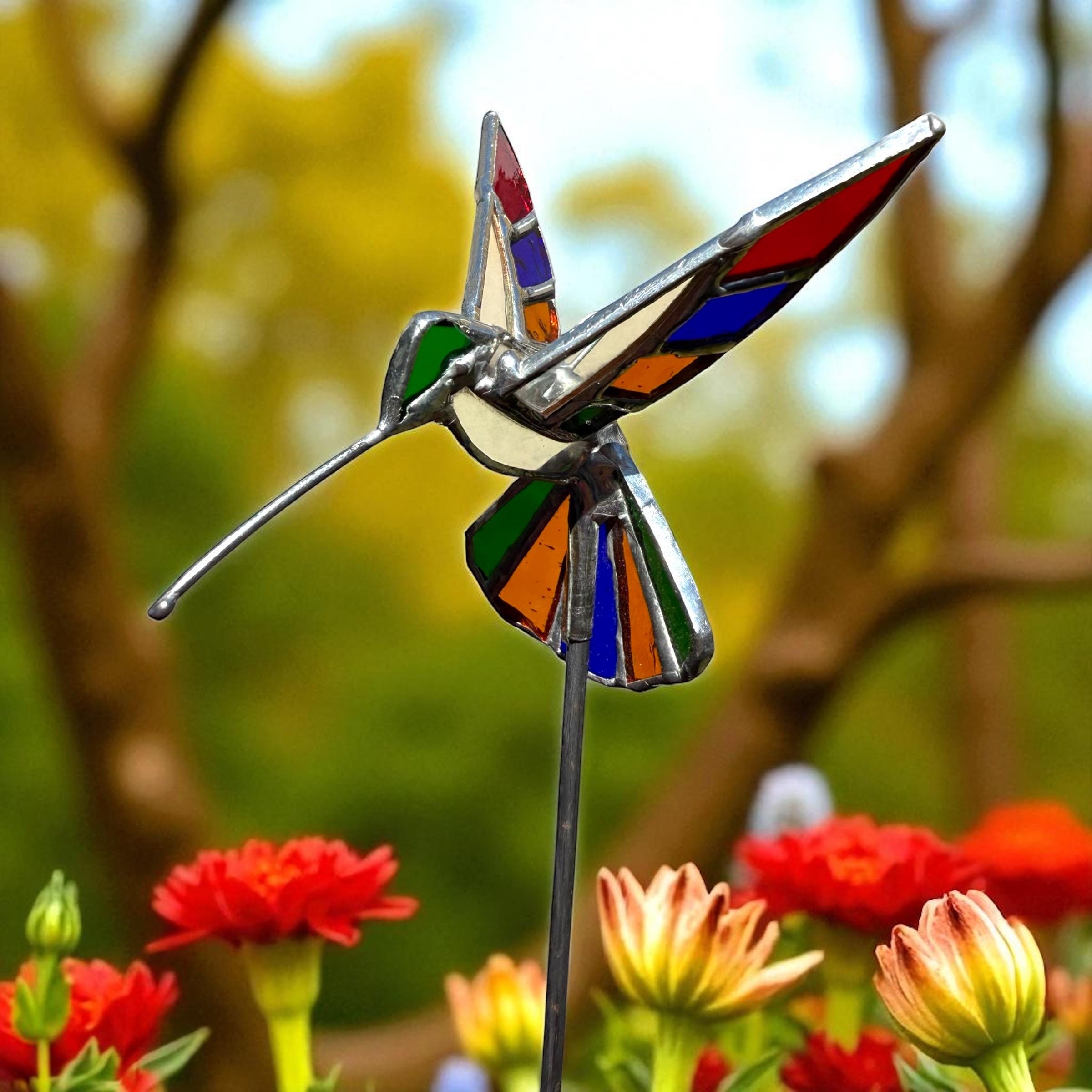 3D Stained Glass Hummingbird Plant Stake