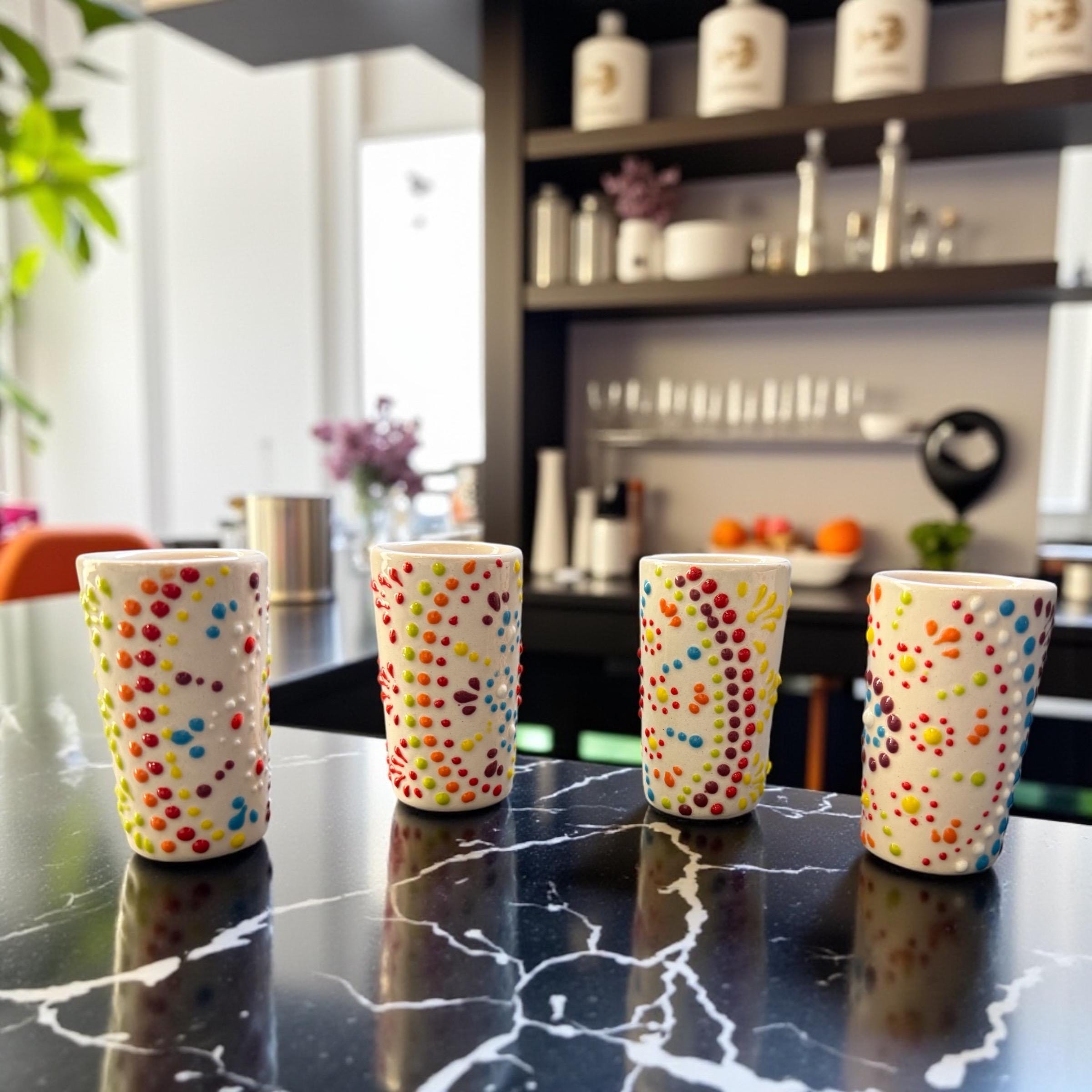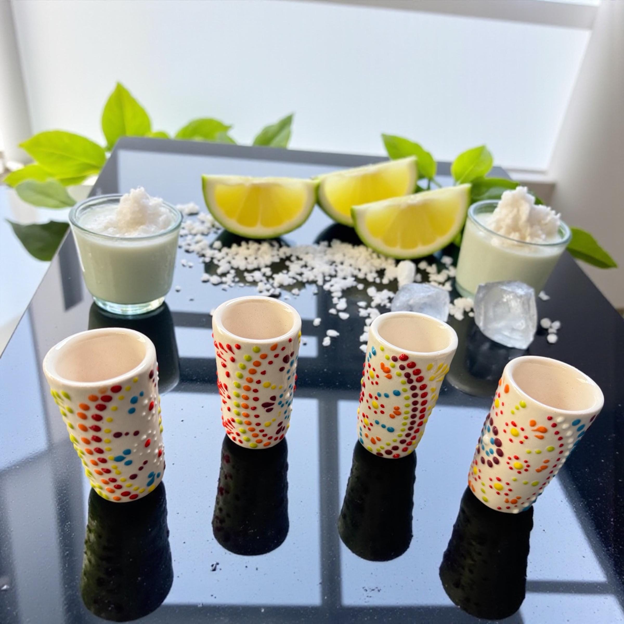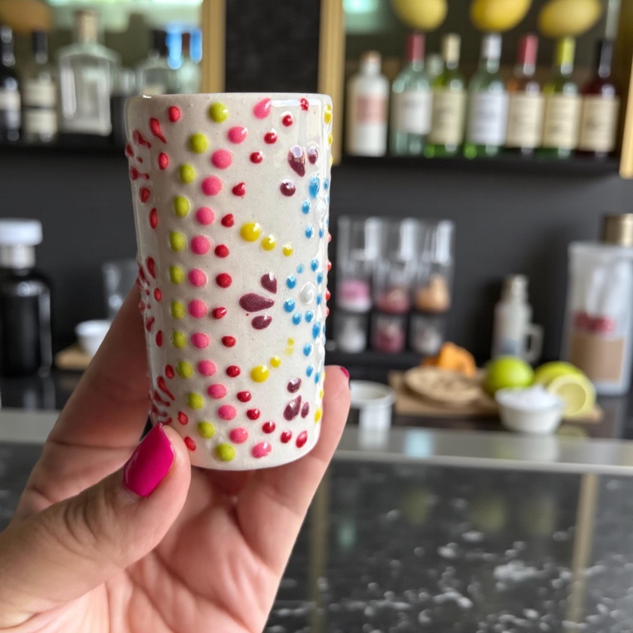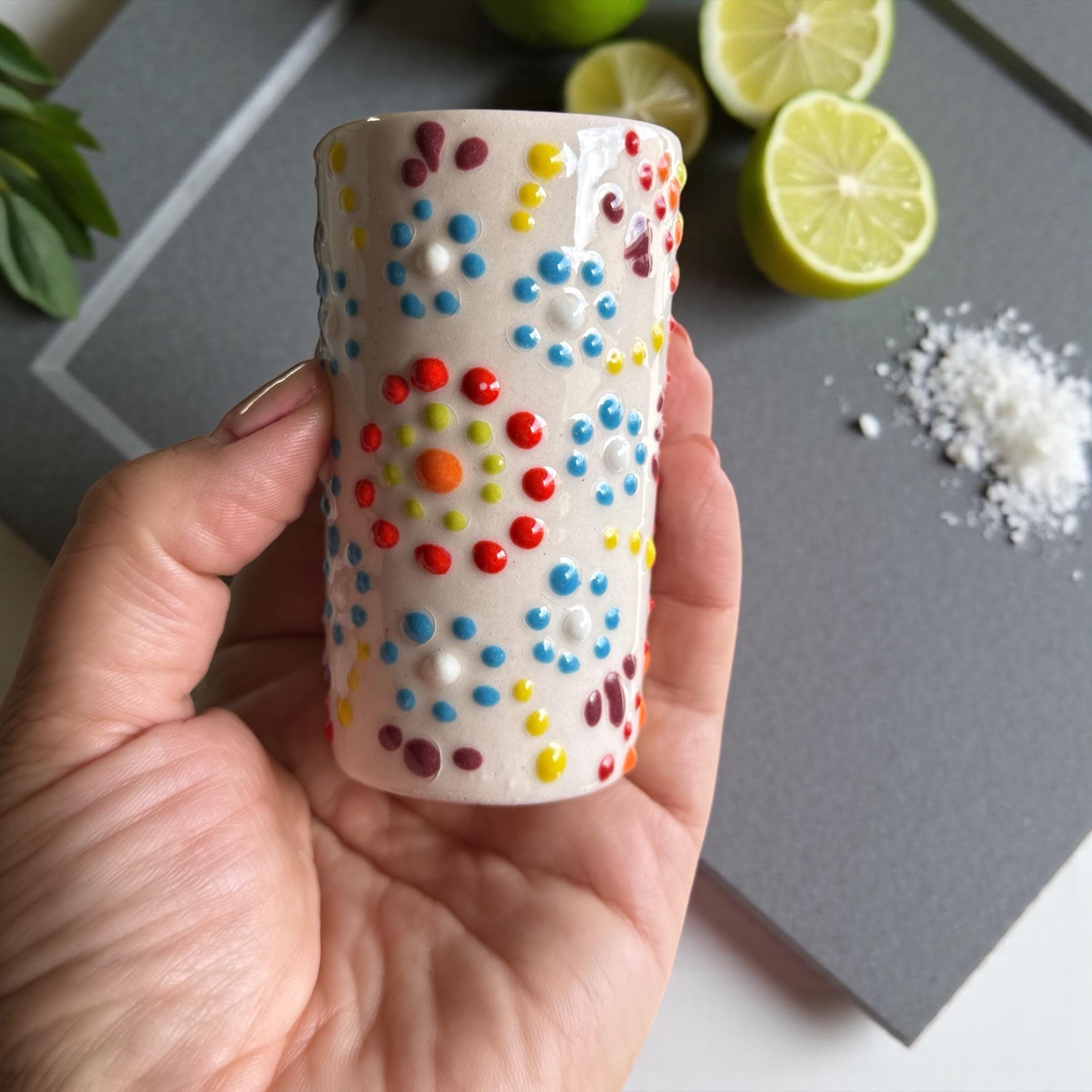 Ceramic Tequila Shot Glass in Mandala Multicolor, Glassware and Kitchenware by Latin Nomad.