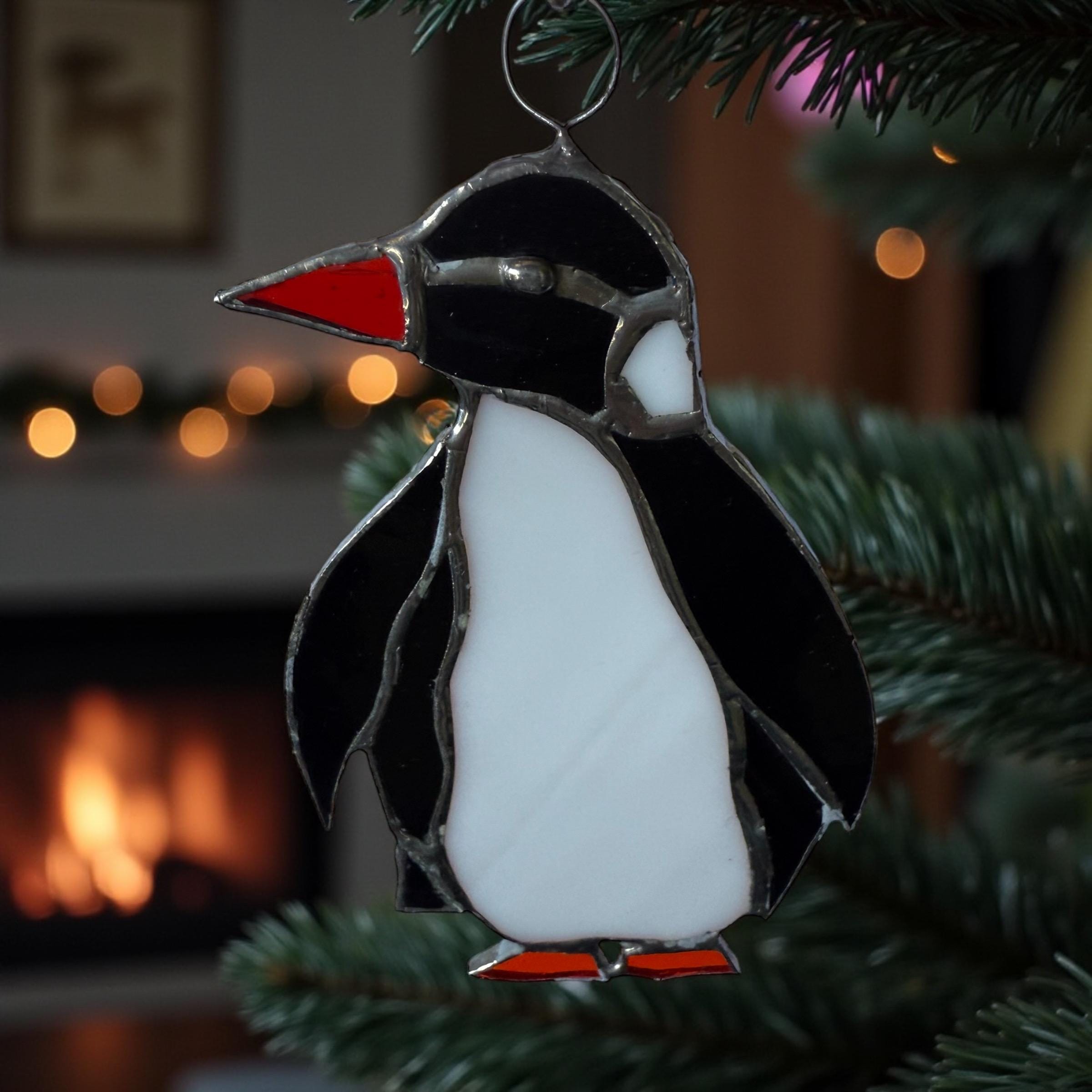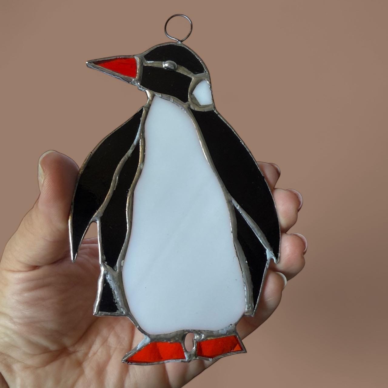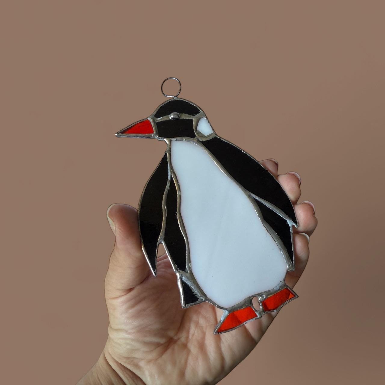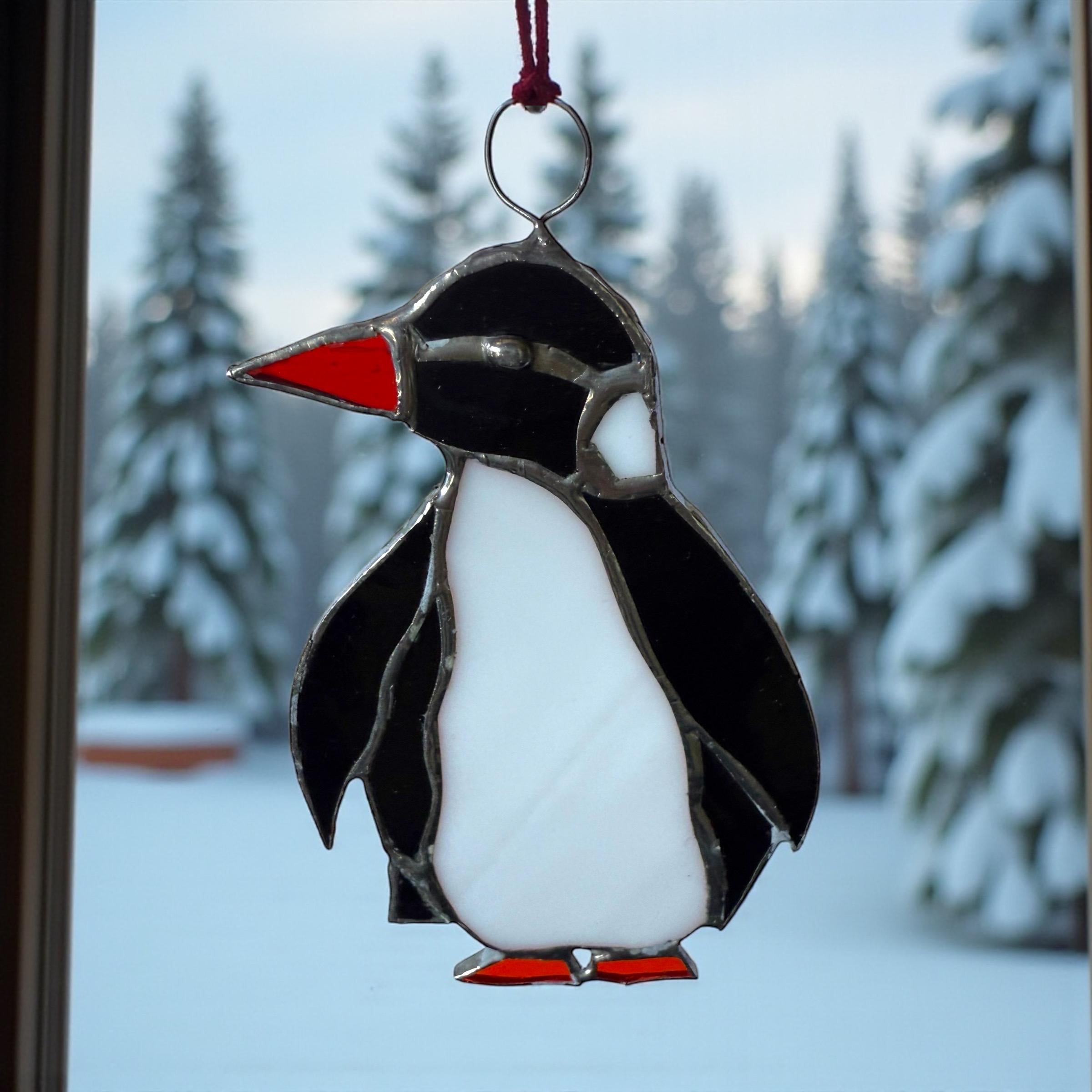 The suncatcher is made of stained glass featuring a lovely penguin using 3 glass tones at the composition using a tiffany glass method technique. Measuring 5 1/4 inches in length and 3 inches in width, this suncatcher is perfect for any room in your home, including the kitchen.