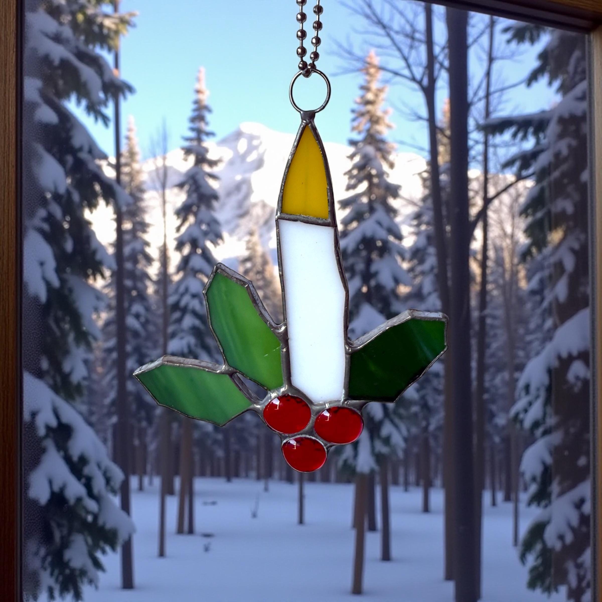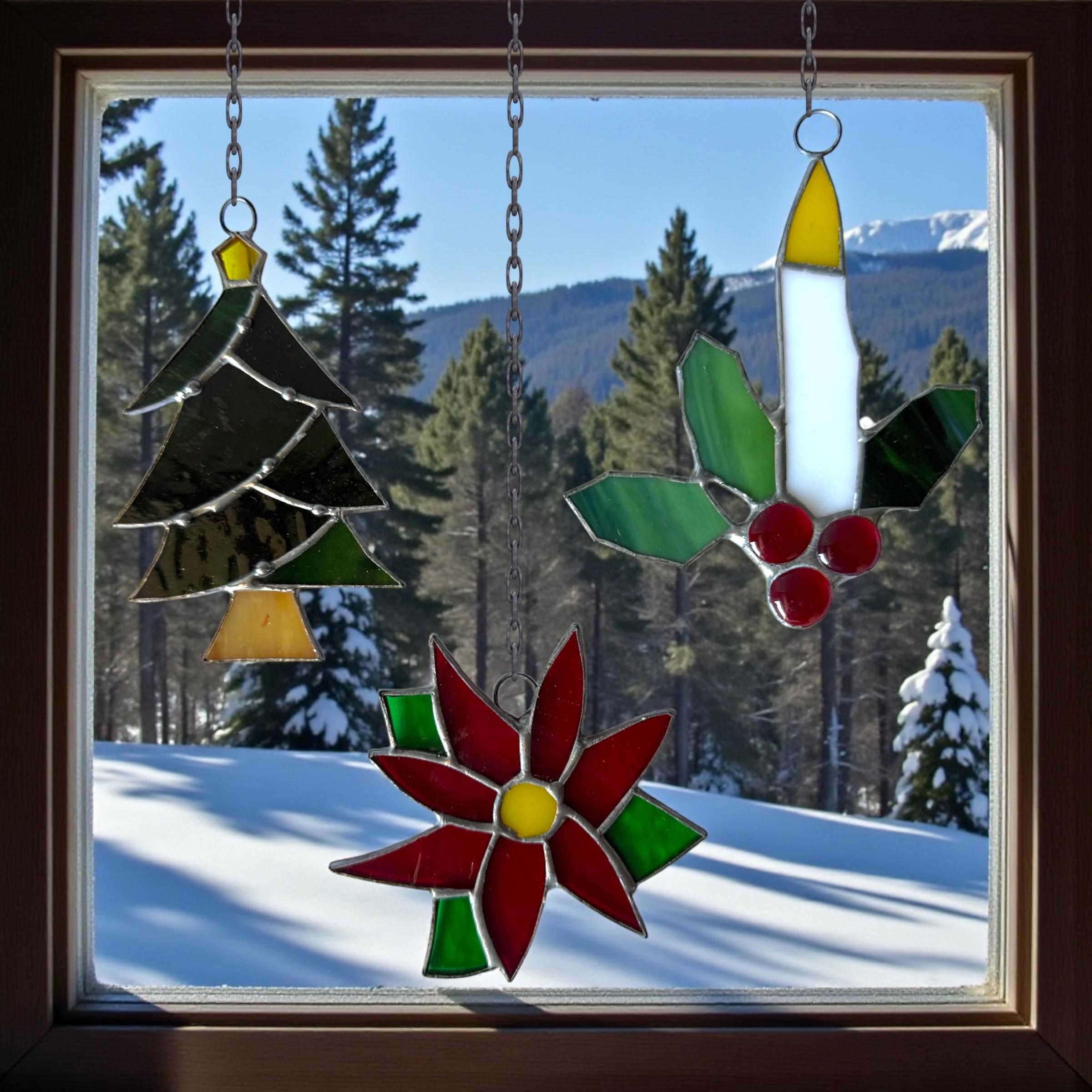 Christmas Set with 3 stained glass ornaments. Made with traditional tiffany glass technique. These Christmas staples makes the perfect sun-catcher for this jolly season!