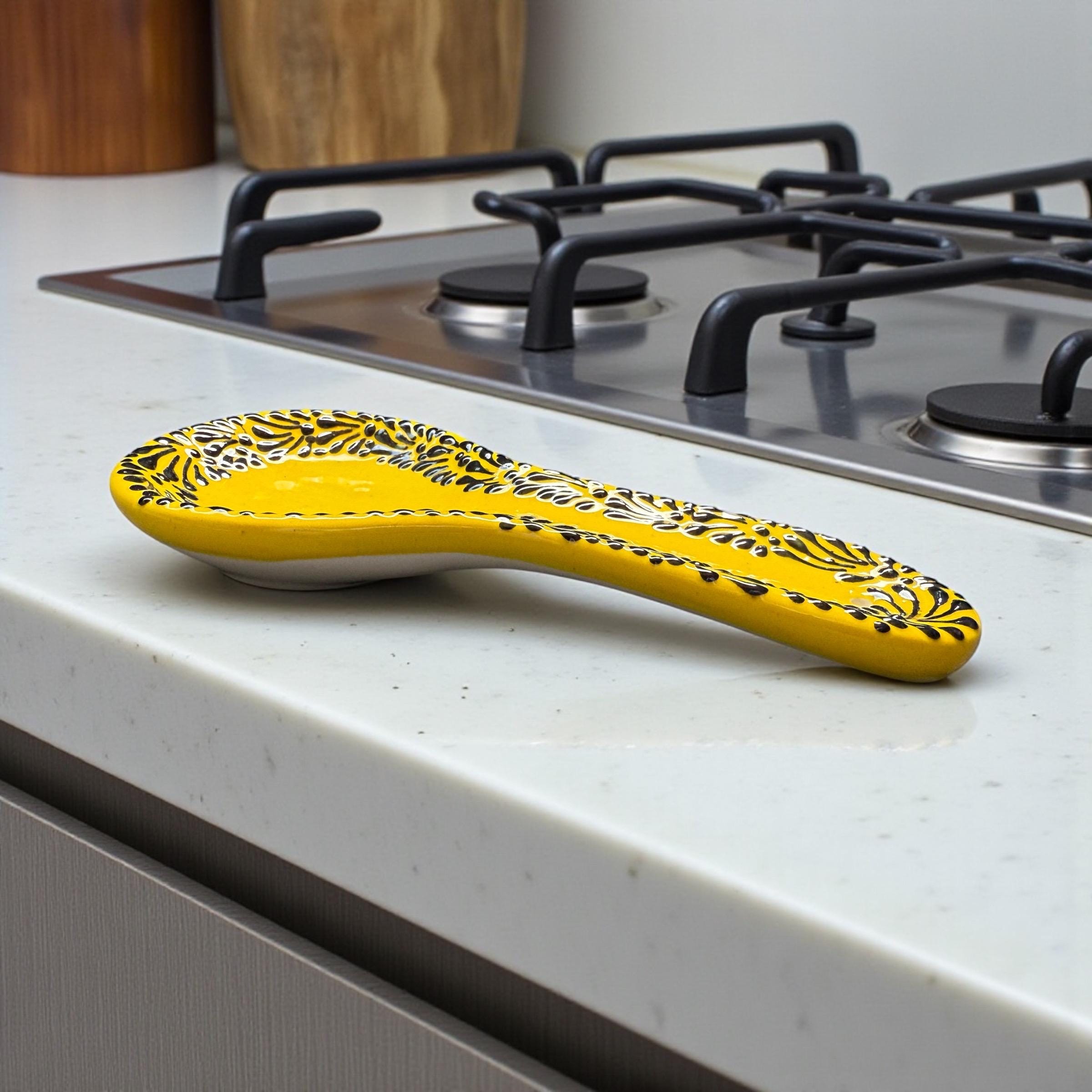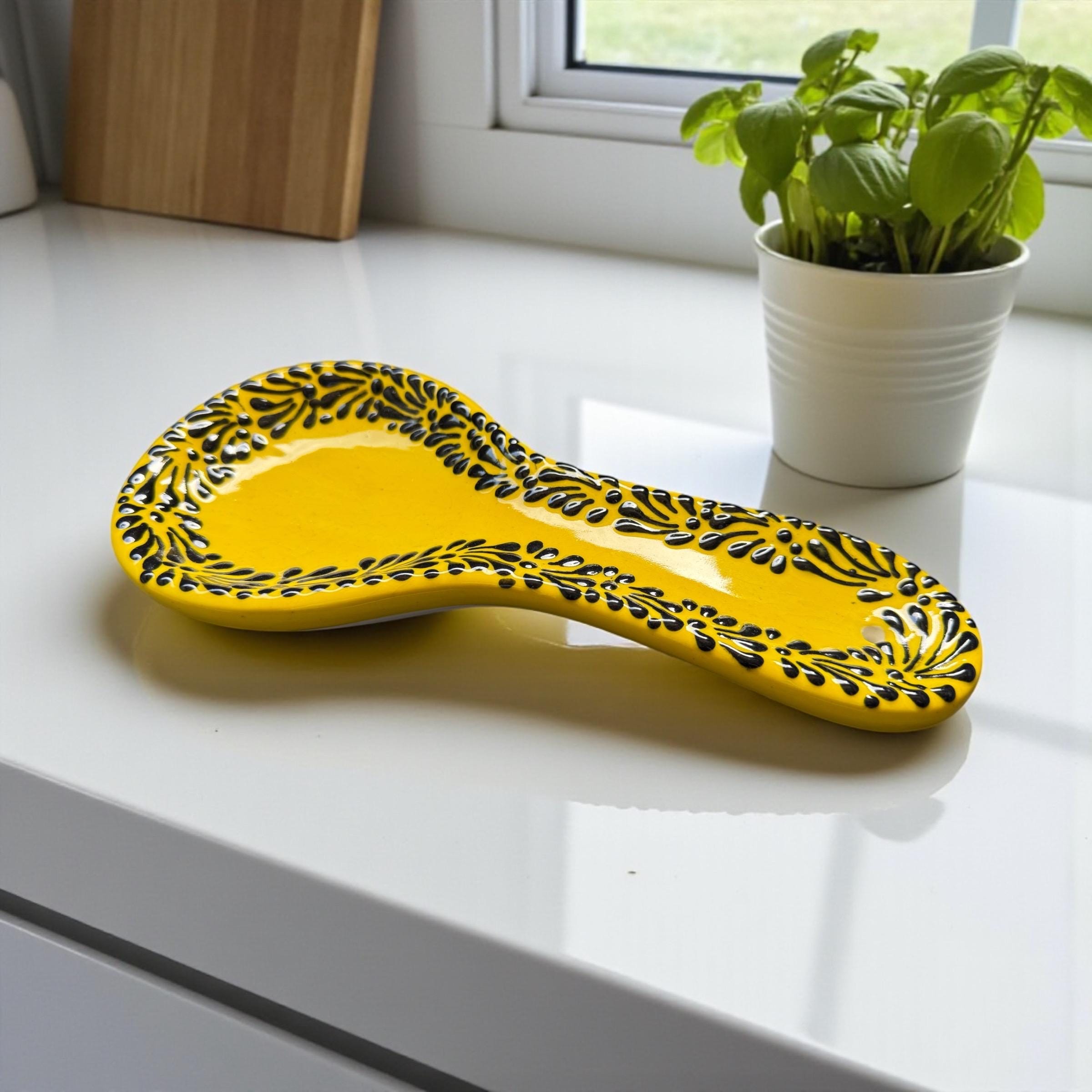 Yellow and Black Ceramic Talavera Spoon Rest / Traditional Mexican Kitchenware and Utensils by Latin Nomad.