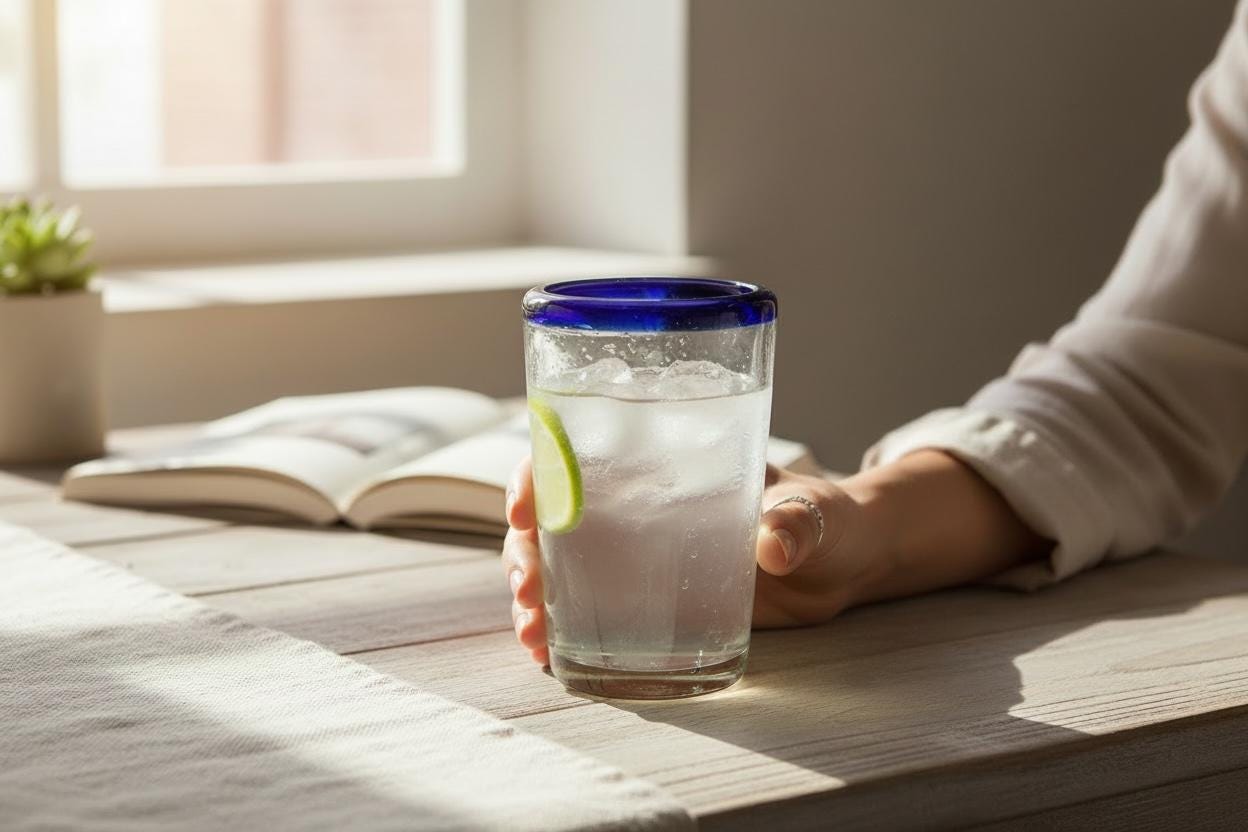 These Highball Glass Set has a bright cobalt blue top rim glass dot texture softened near the rim on top.