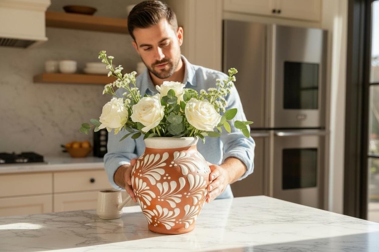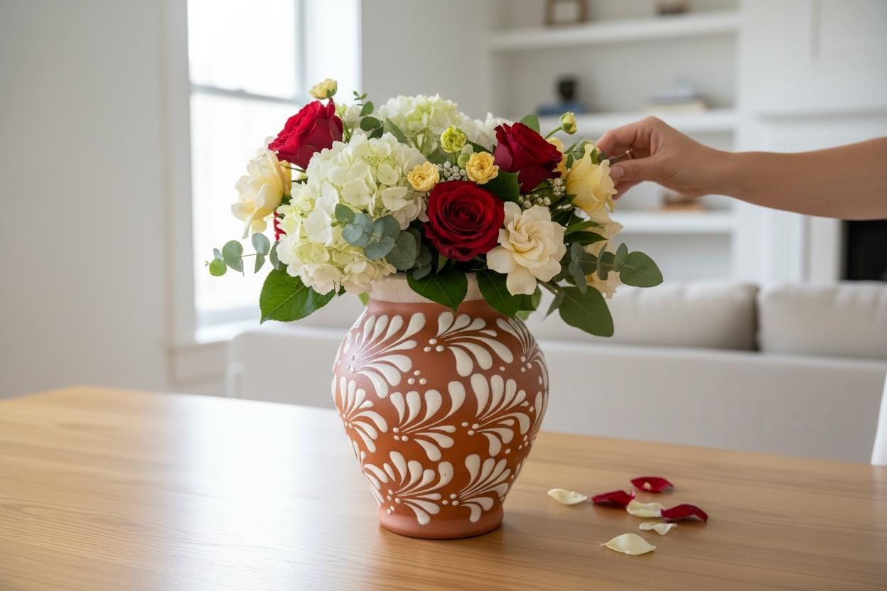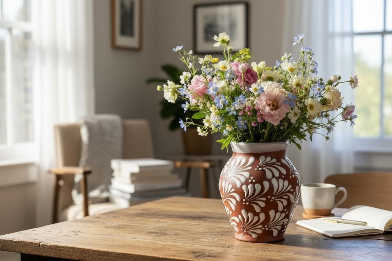 Terracotta Floral Vase by Latin Nomad.