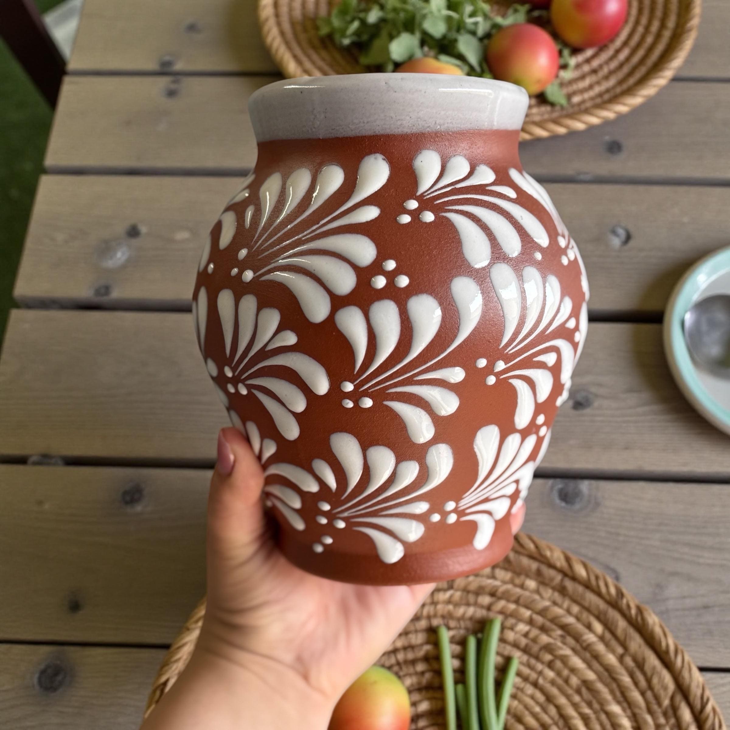 Introducing a traditional "Mexican feathered" design with a touch of elegance and charm to any floral design. This handcrafted floral vase showcases a simple silhoutte, has an earthenware matte finish that ensures easy cleaning and maintenance, while sturdy and safe construction guarantees long-lasting use.