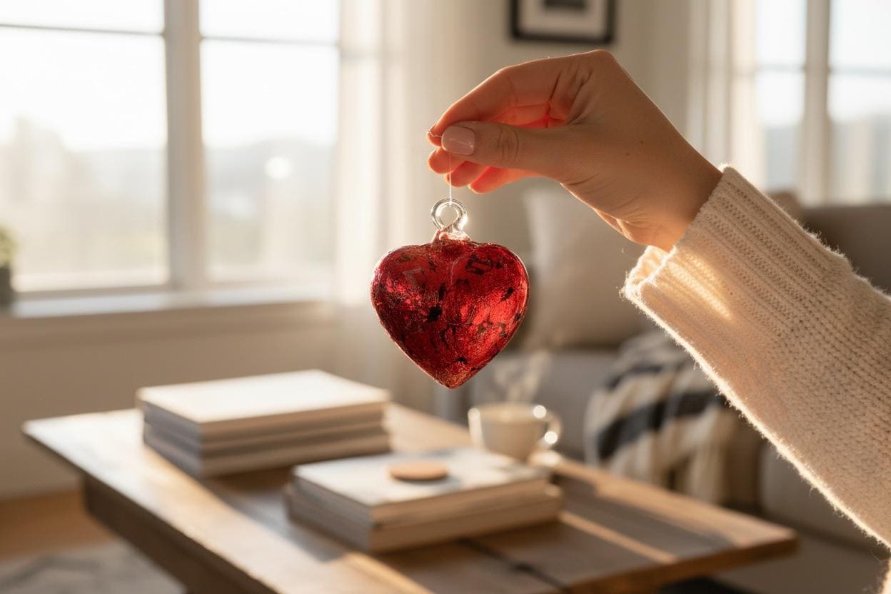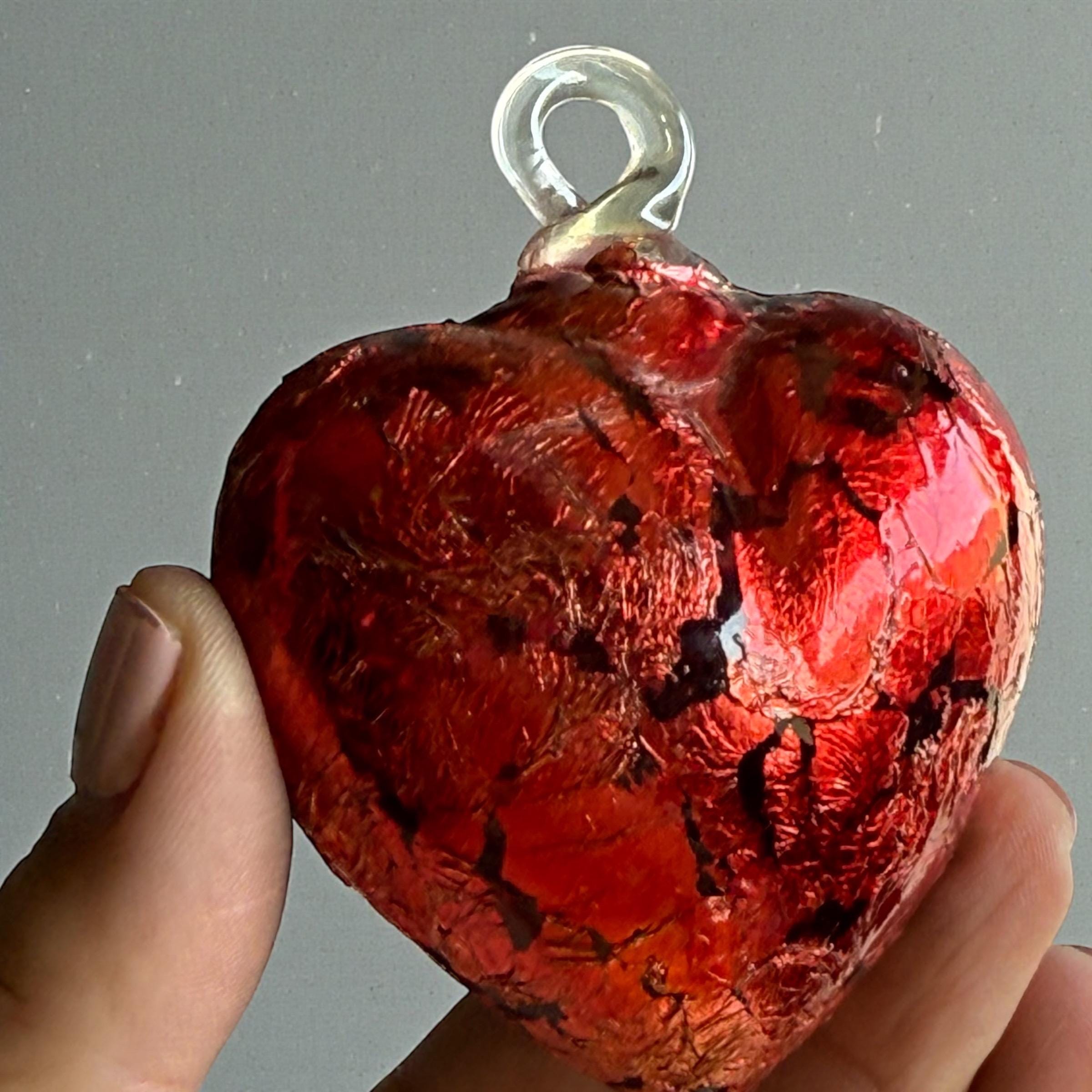 Glass Hearts with Red Metal Foil, Hand Blown Glass Technique