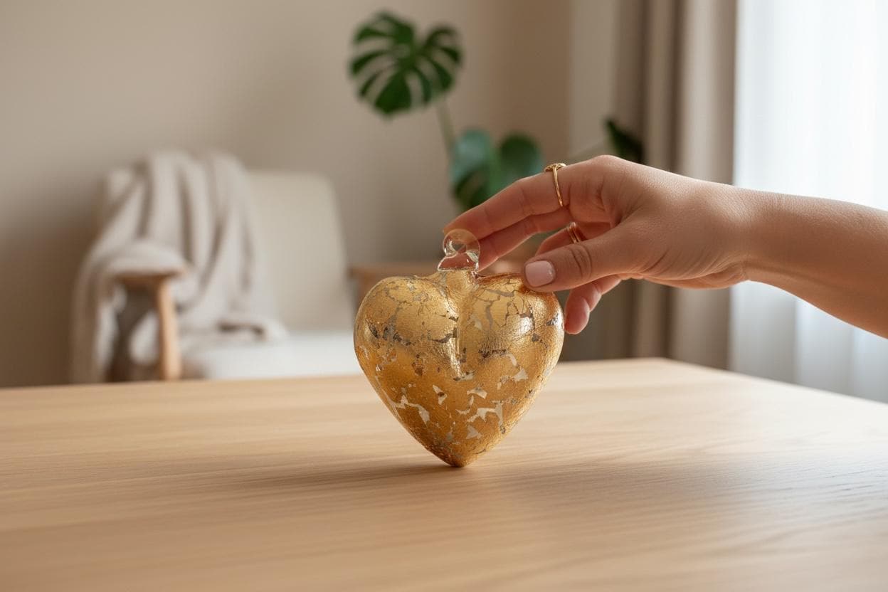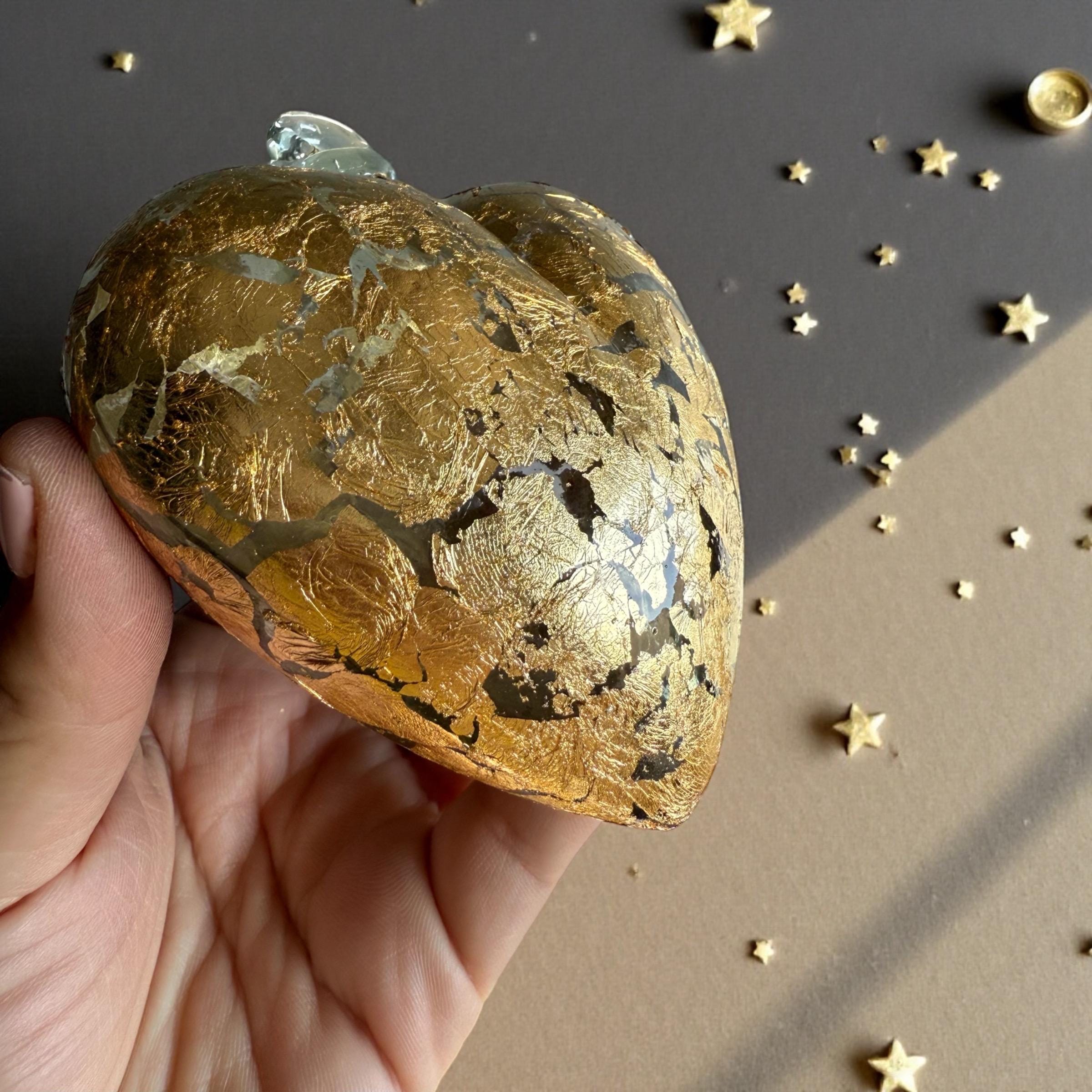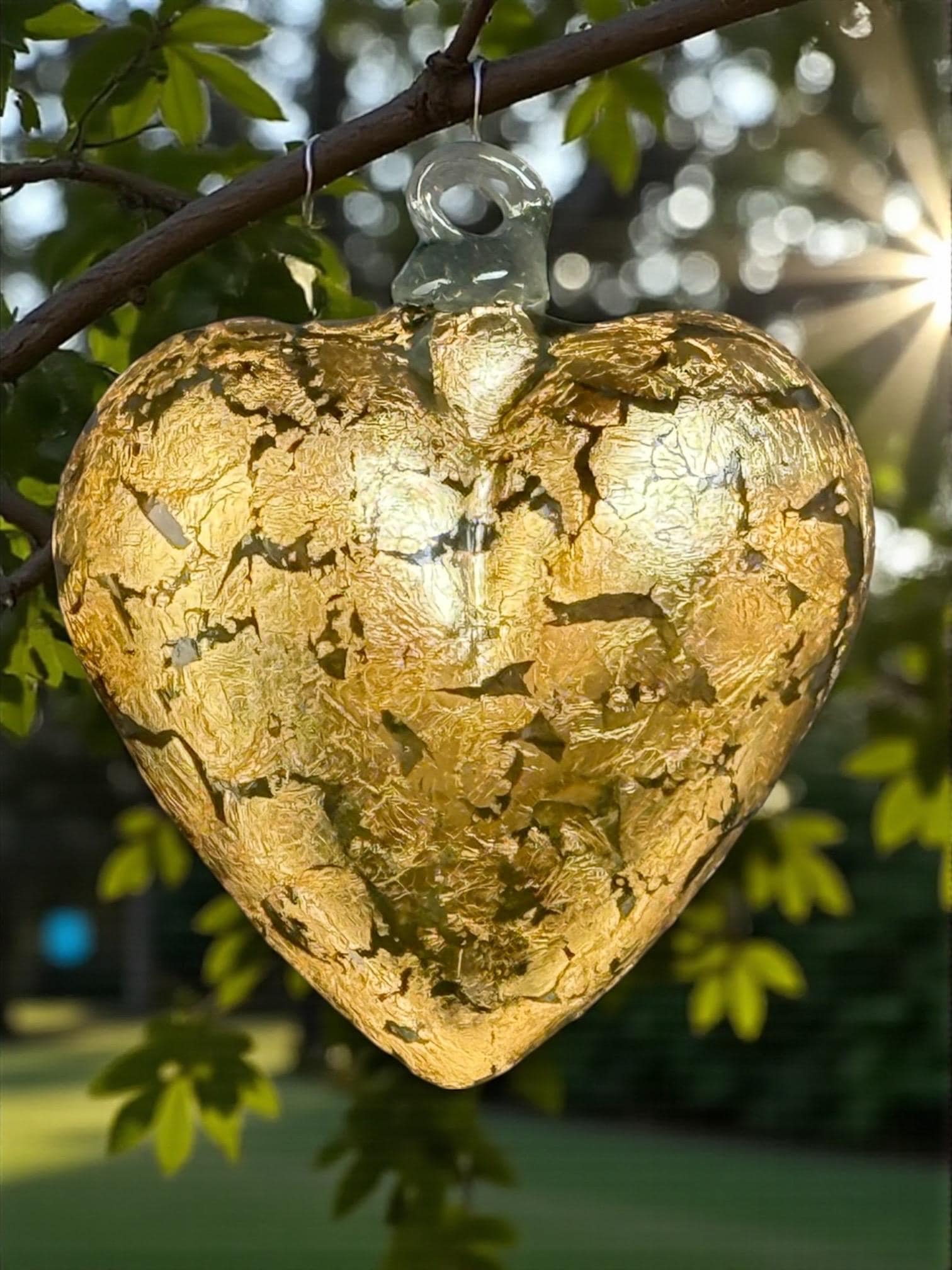 3D Hand Blown Glass Heart & Metal Foil Textured. Beautiful glass art with heart shape. Perfect to decorate any room in your house and patio projects.