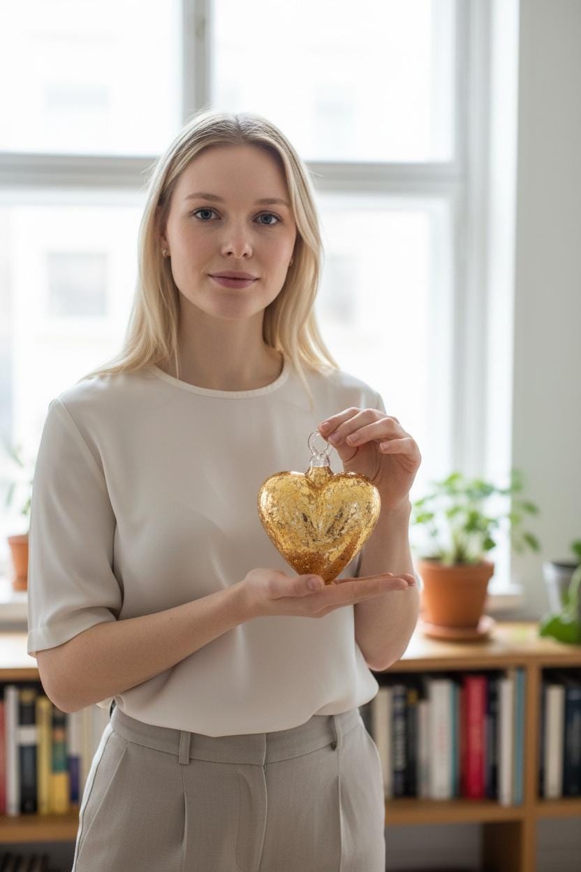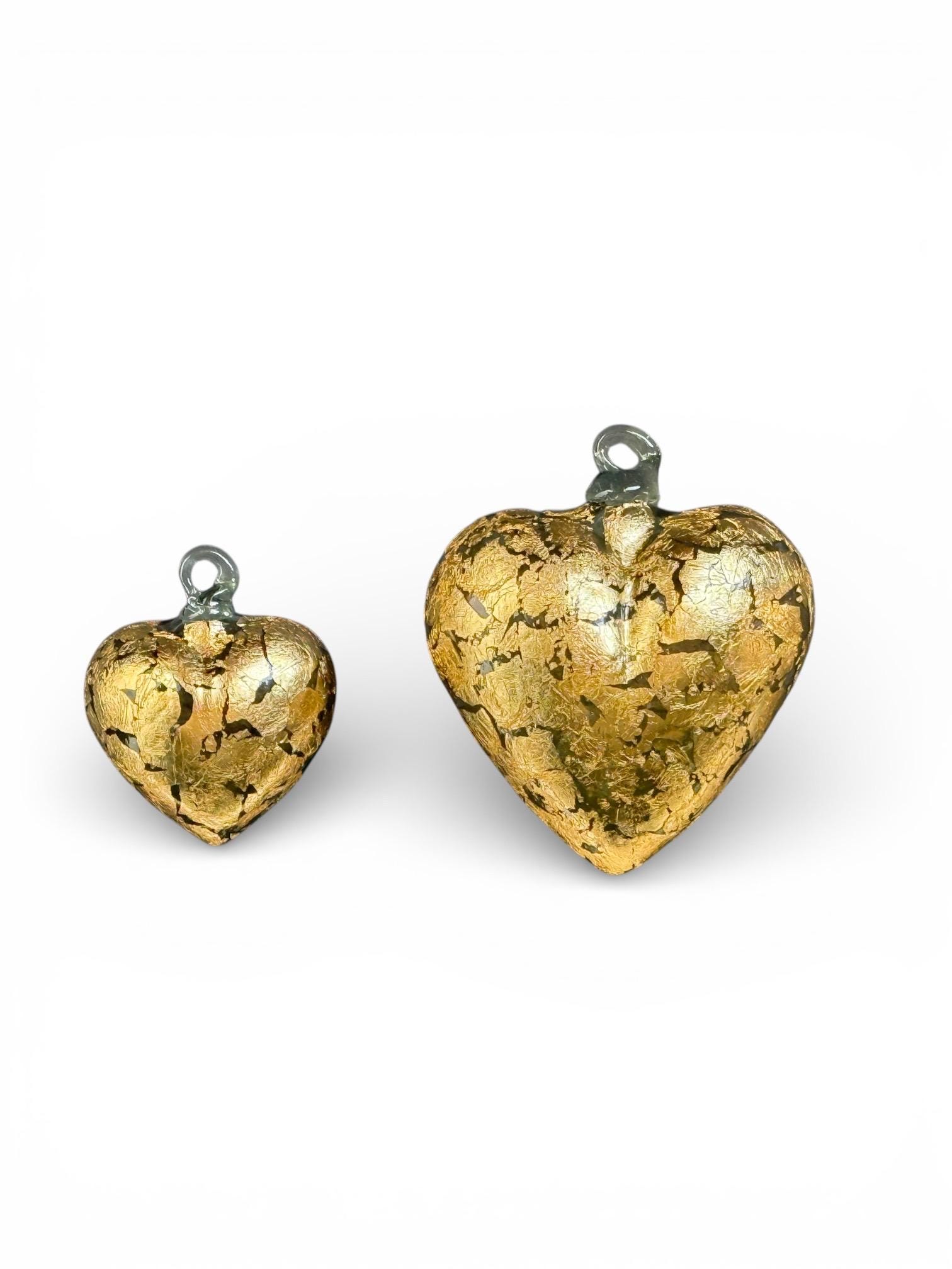 Glass Hearts with Gold Tone Metal Foil, Hand Blown Glass Technique