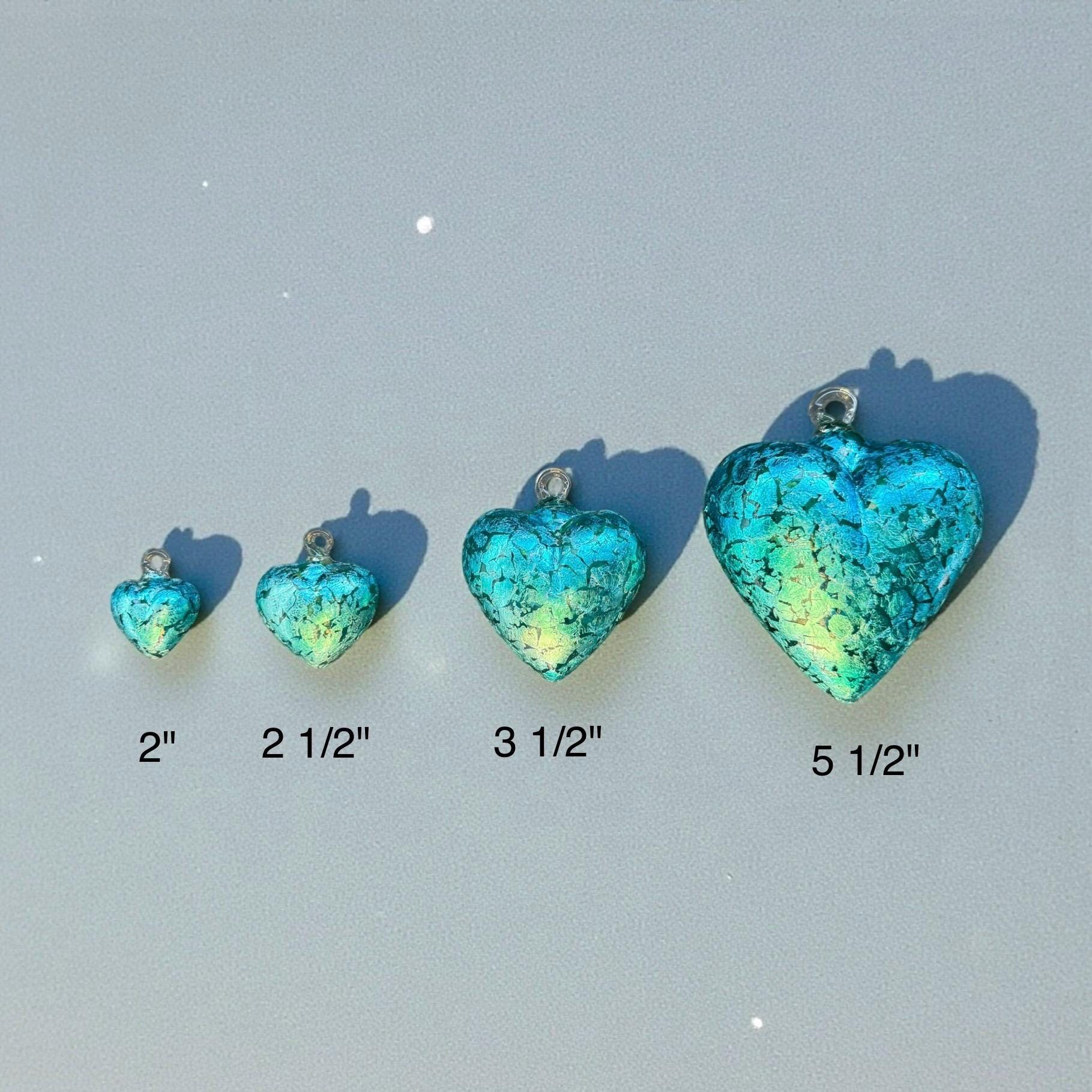 Glass Hearts with Teal Metal Foil, Hand Blown Glass Technique