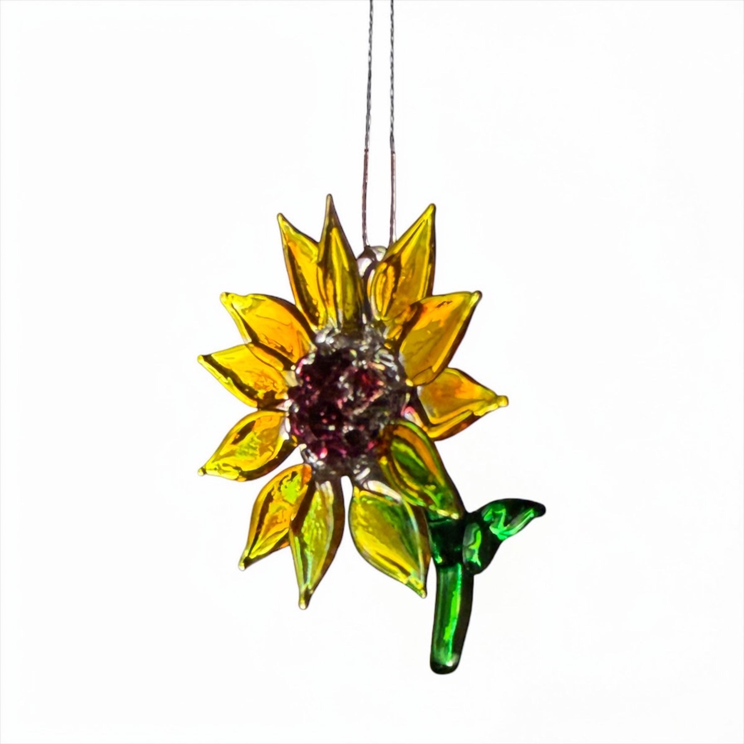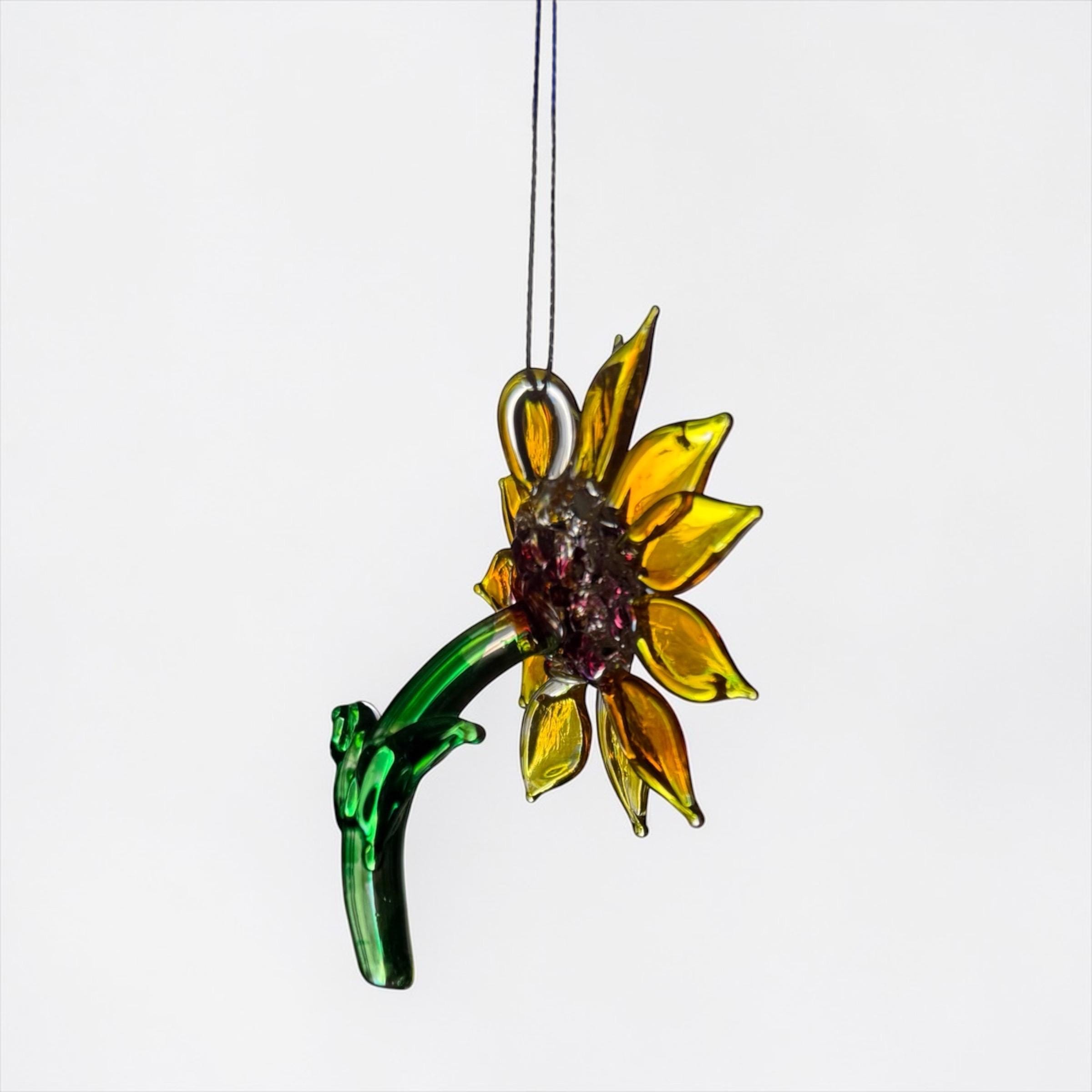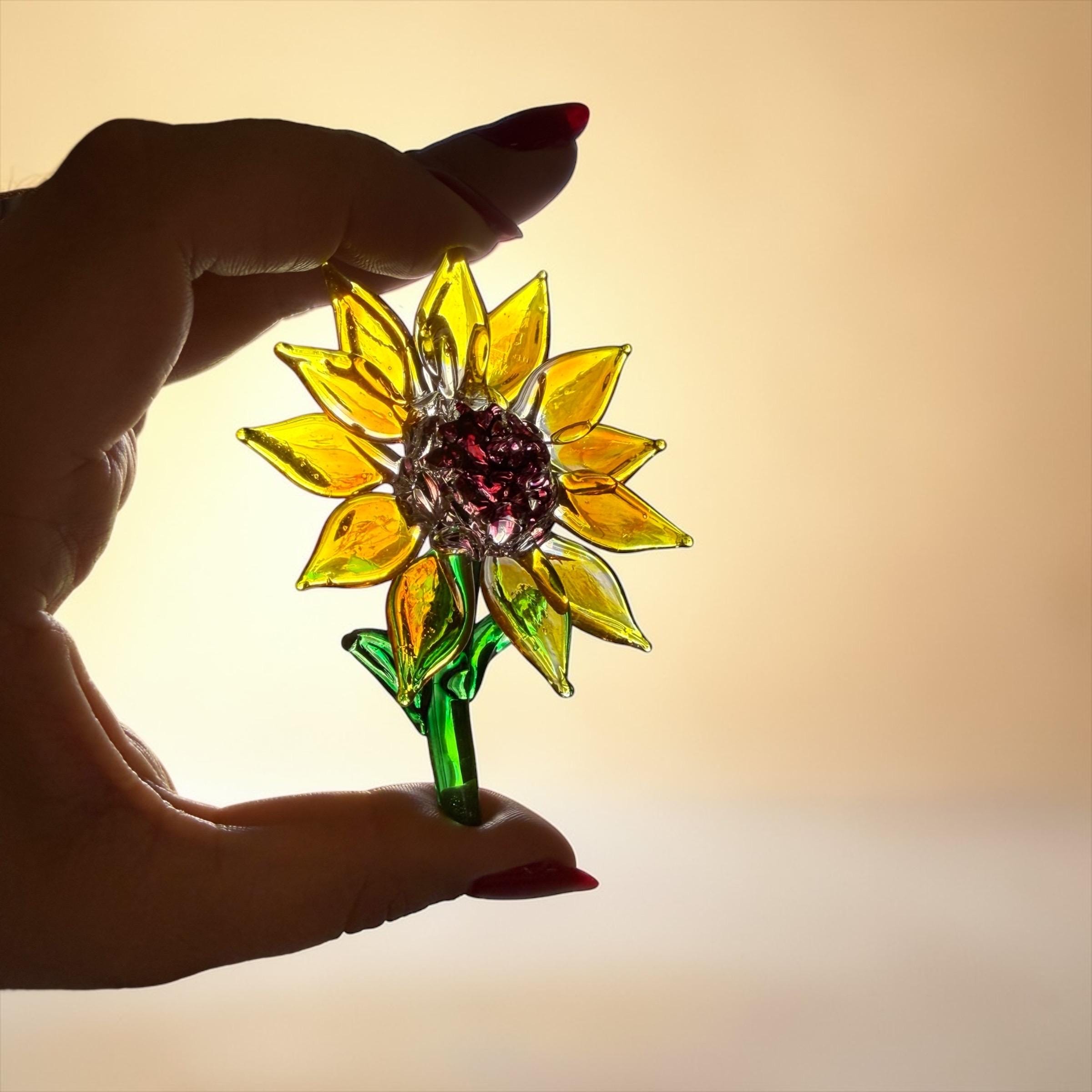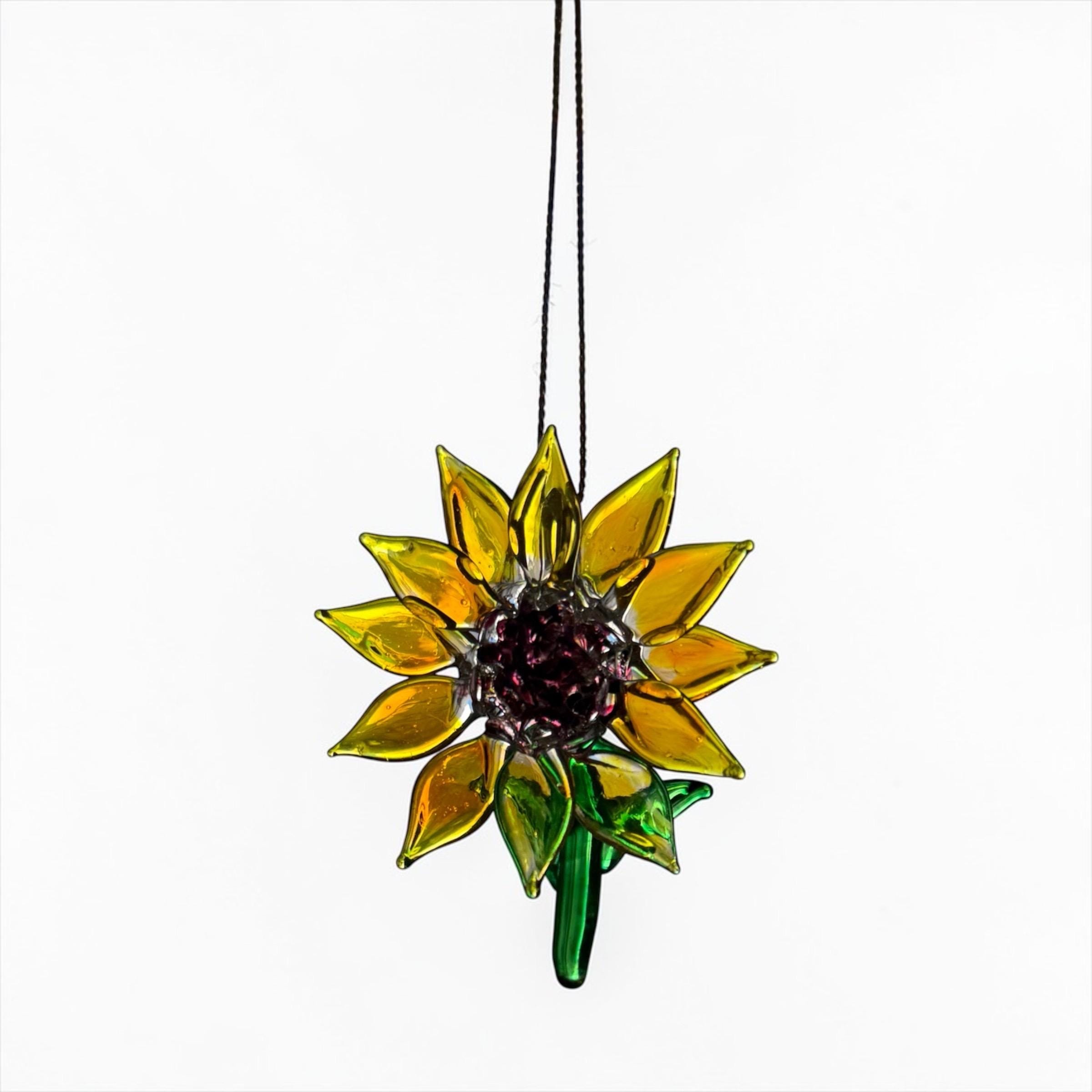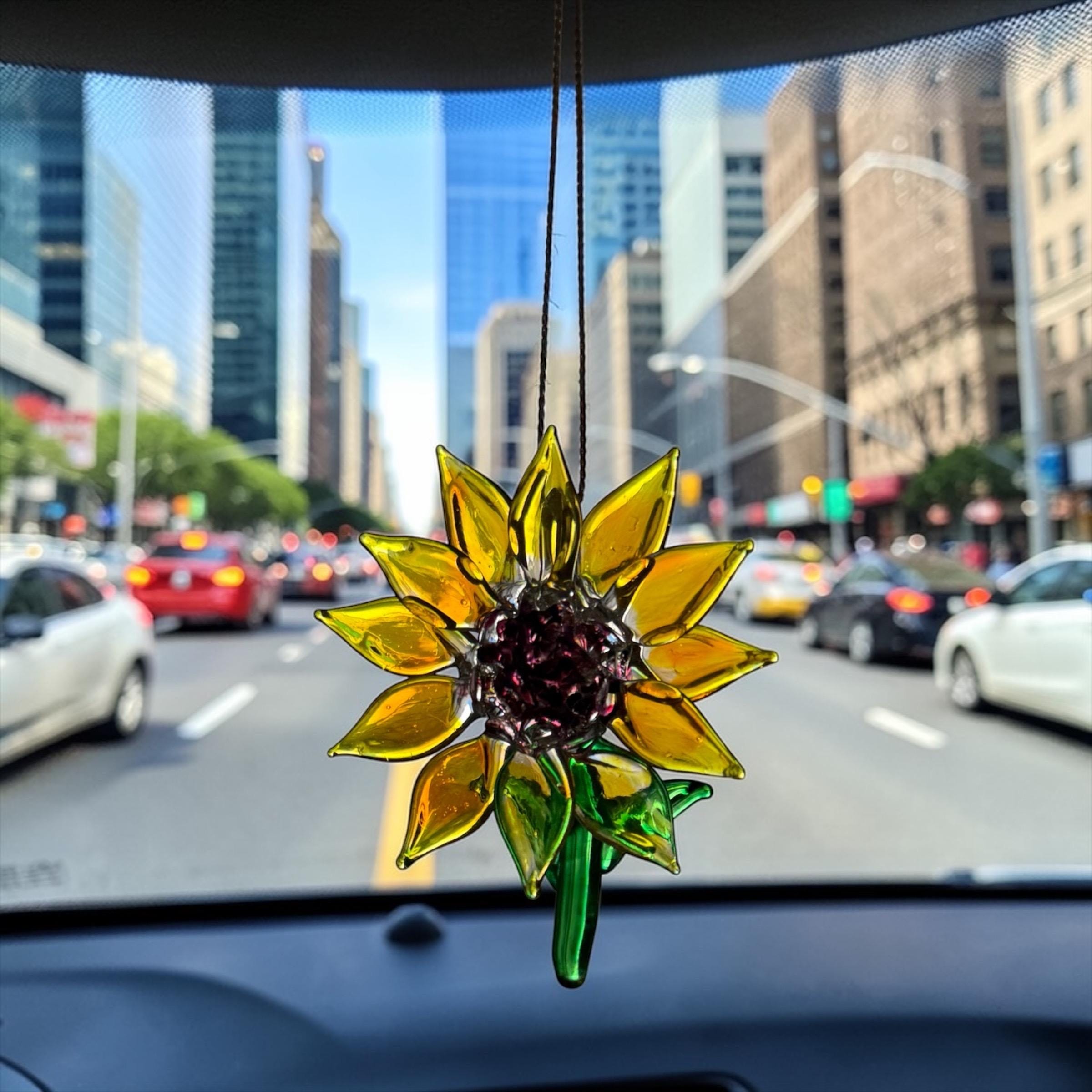 Sunflower handblown glass art, Flower rear-view mirror car accessories