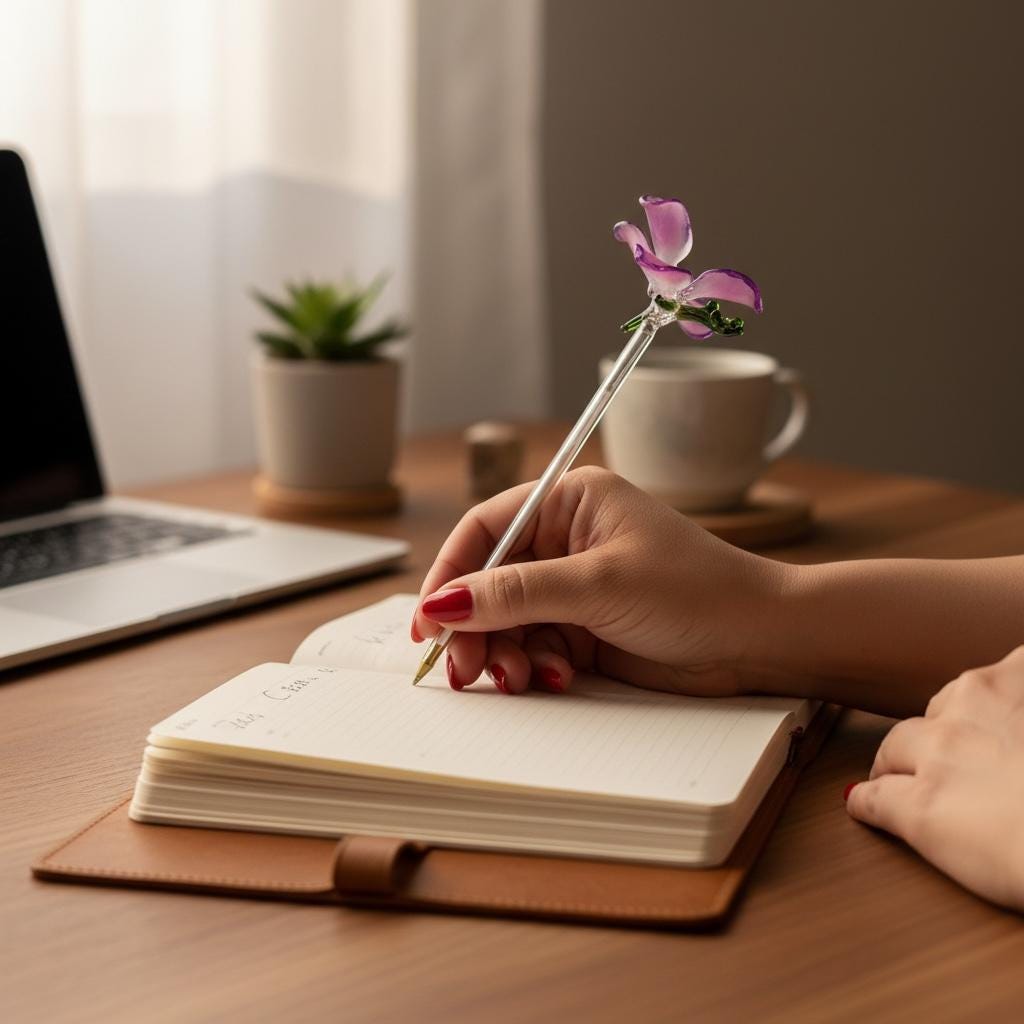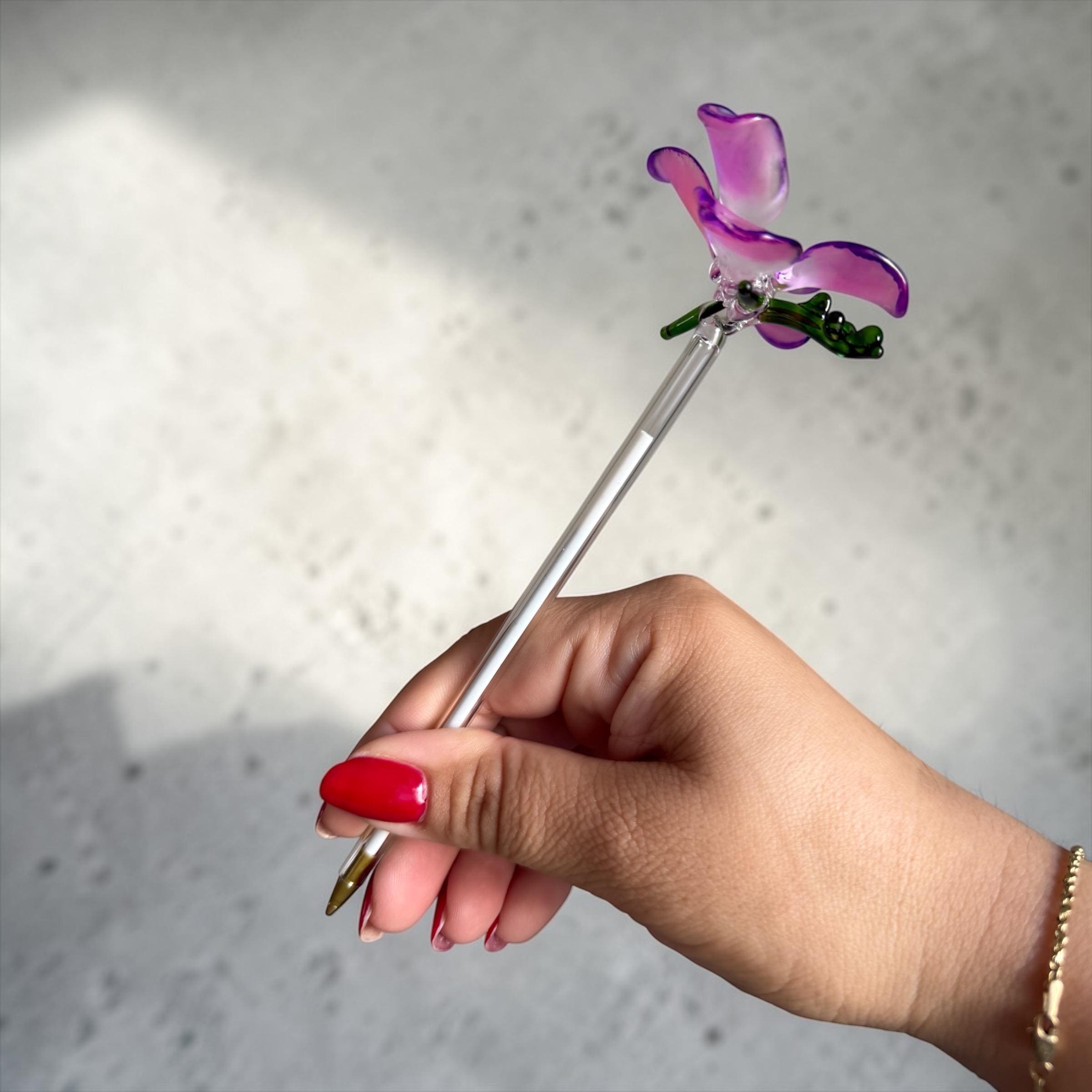 This pen is handcrafted with a decorative glass motiff at the top of the pen, perfect for any gift ocassion or as an eye candy for your desk. Pen design doesn't come with a plastic or glass cap.