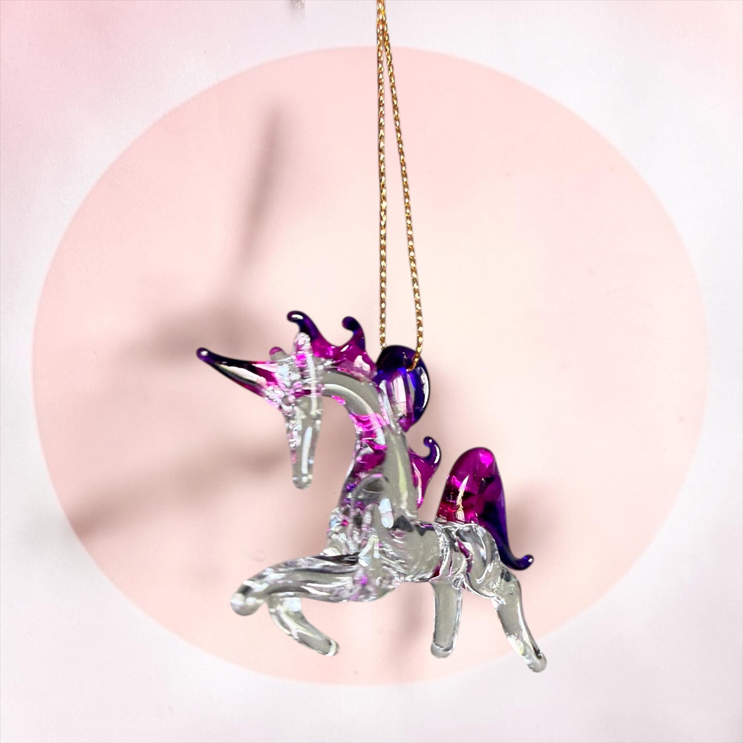 Unicorn handblown glass art, rear-view mirror car accessories